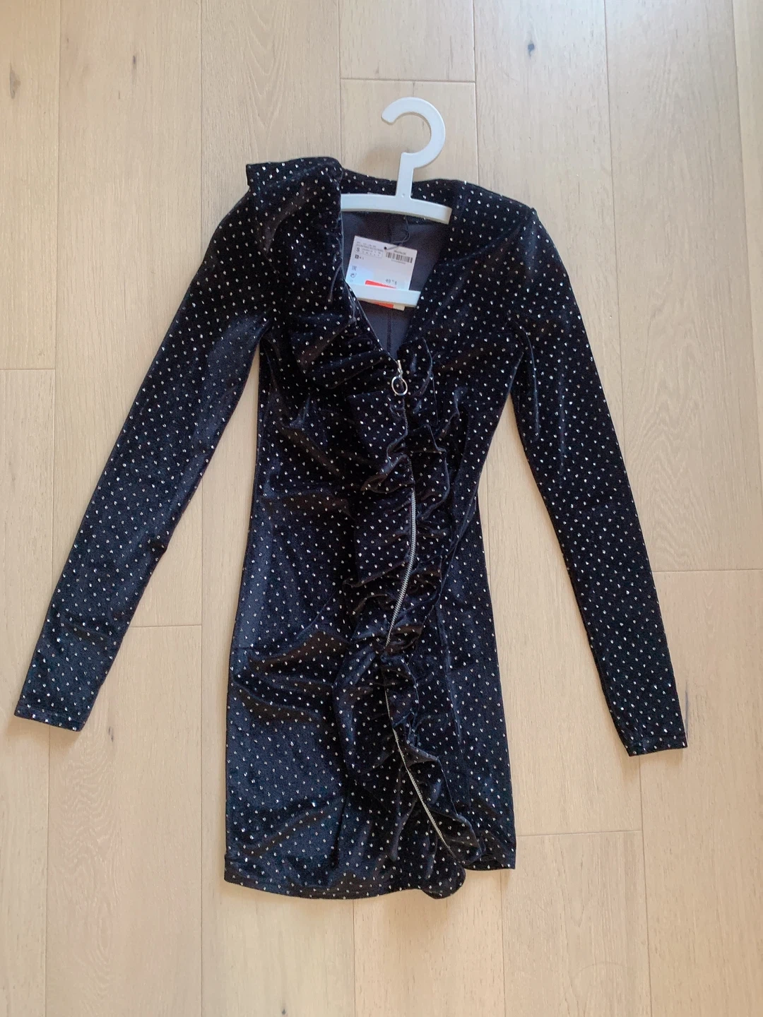 31Selling a Zara black velvet mini dress in size small! It features a stylish zipper detail and studded with crystals. Perfect for a night out! Brand new with tag Length 87cm Chest 68cm