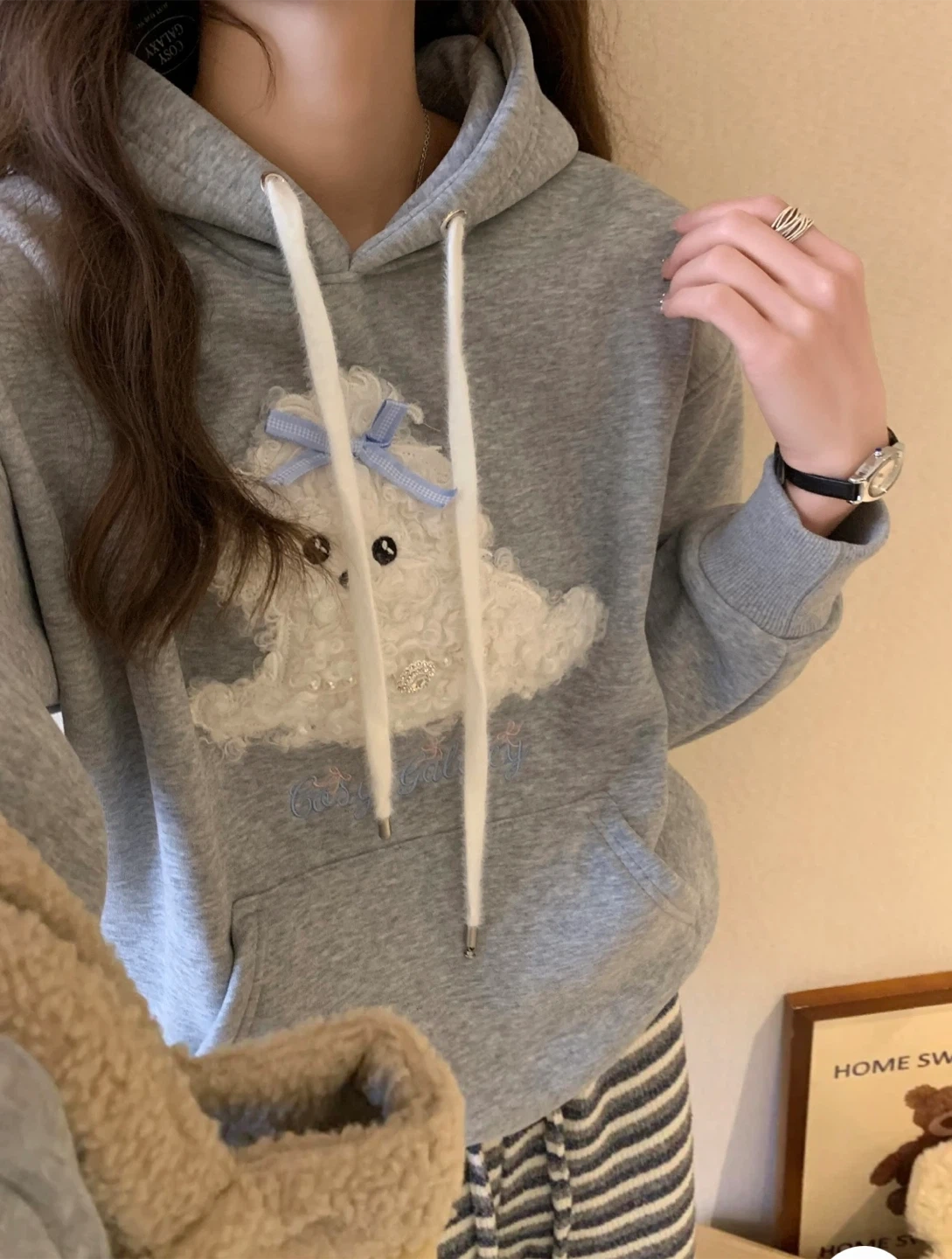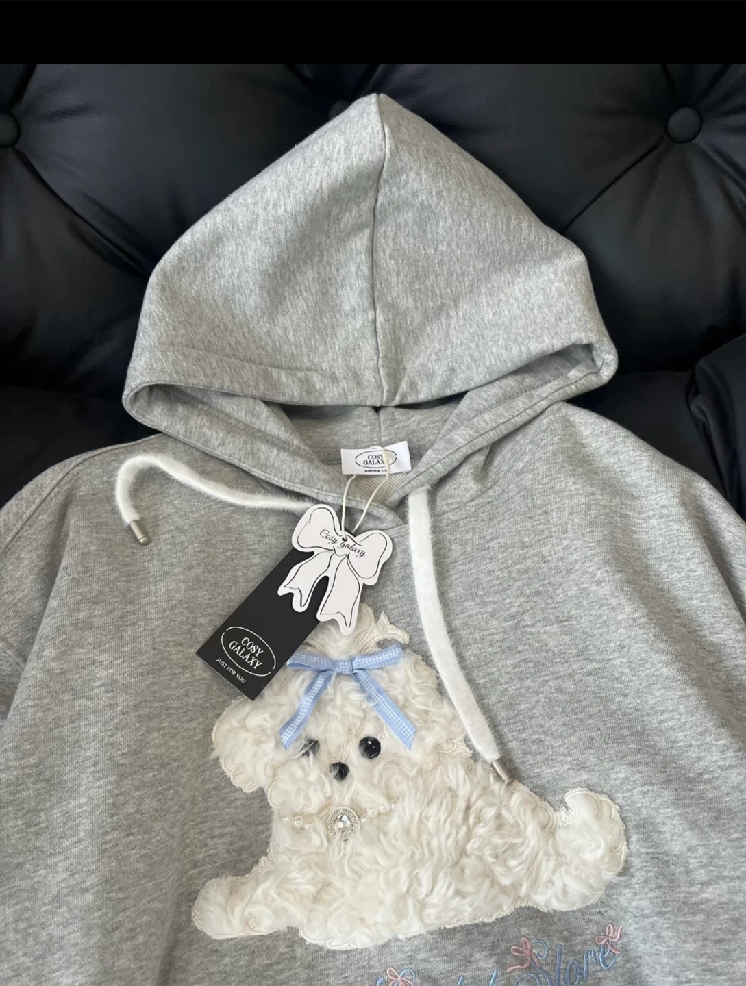 31Selling a cozy grey hoodie from Cozy Galaxy. It has a cute dog design on the front. Very thick. Perfect for winter. Brand new with tag Length 63cm Chest 120cm