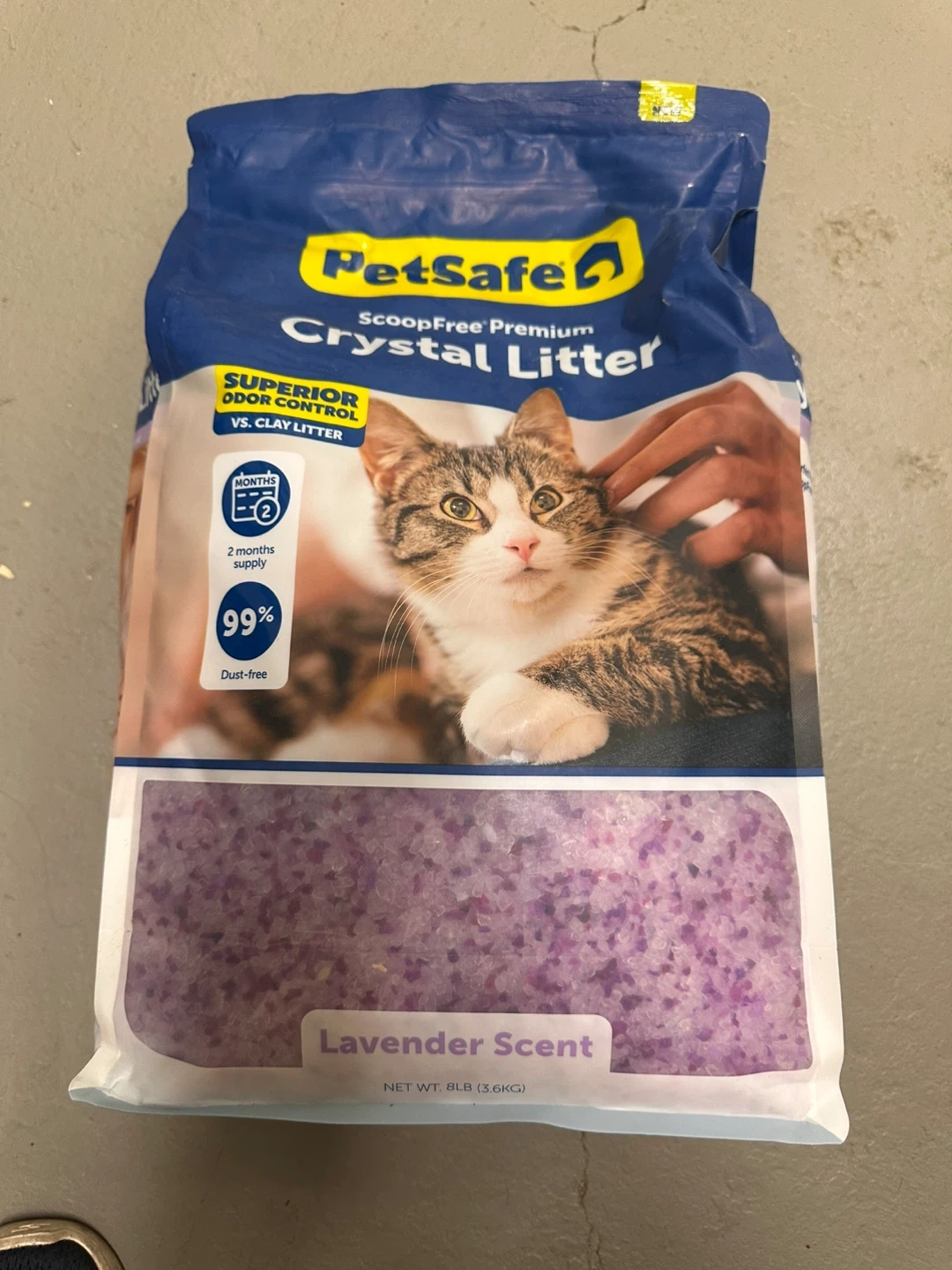 Keep your cat's litter box fresh with PetSafe ScoopFree Premium Crystal Litter in a soothing lavender scent! This 8LB bag of crystal litter provides superior odor control and 99% dust-free cleaning. It's designed to absorb moisture and reduce mess, making it easy to maintain a clean and healthy environment for your feline friend