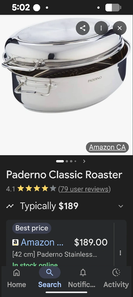 Selling a new Paderno 43 cm stainless steel roasting pan, never used, complete with a rack! It's in mint condition and ready for your next roast dinner or holiday feast. Perfect for cooking up delicious meals for the whole family