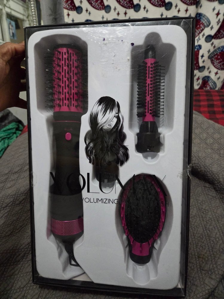 New volumizing hot air brush kit, still in the box! It comes with four attachments: a 0.75 inch vented round brush, a 2 inch thermal round brush, a concentrating dryer, and an oval paddle brush