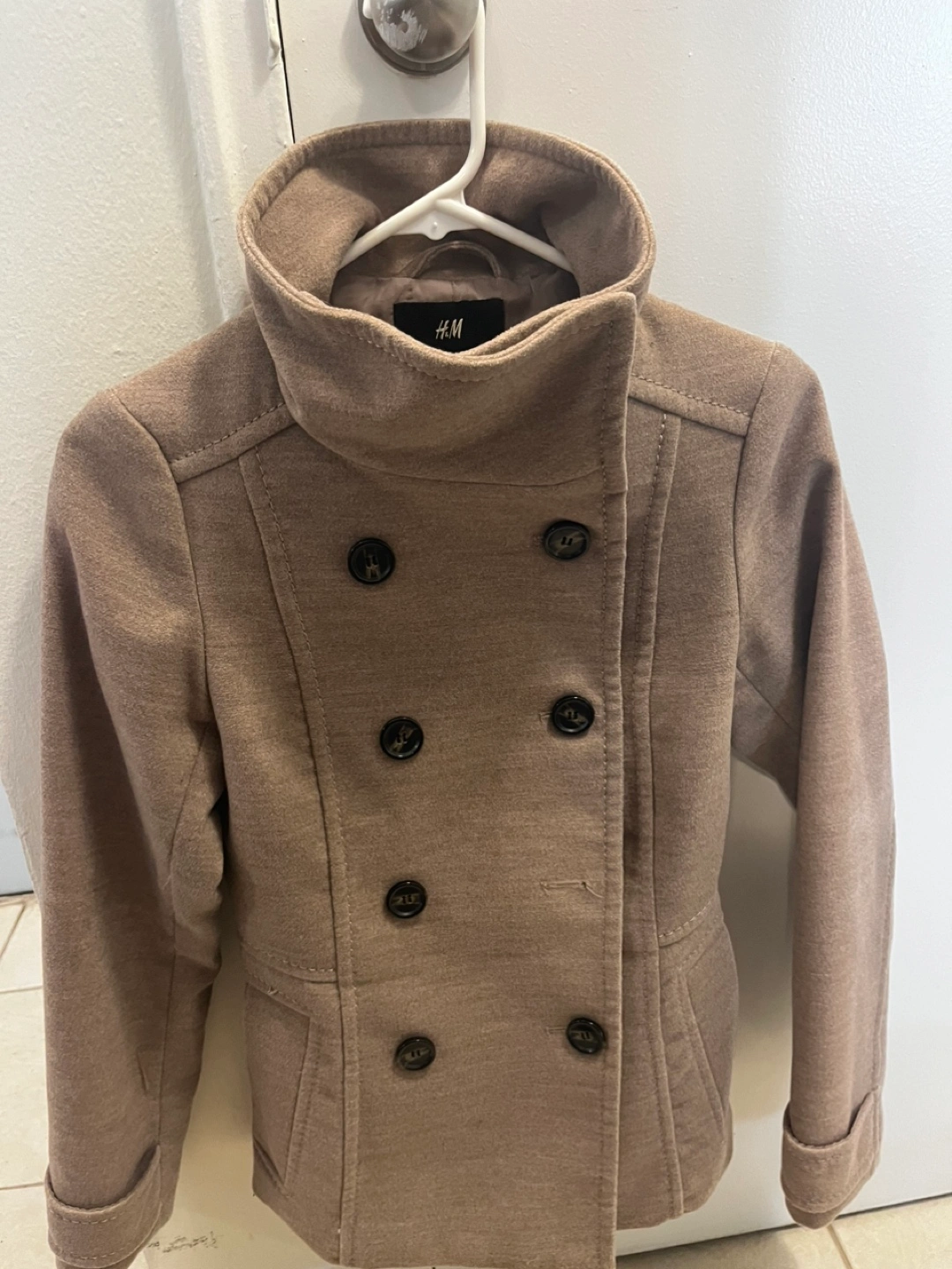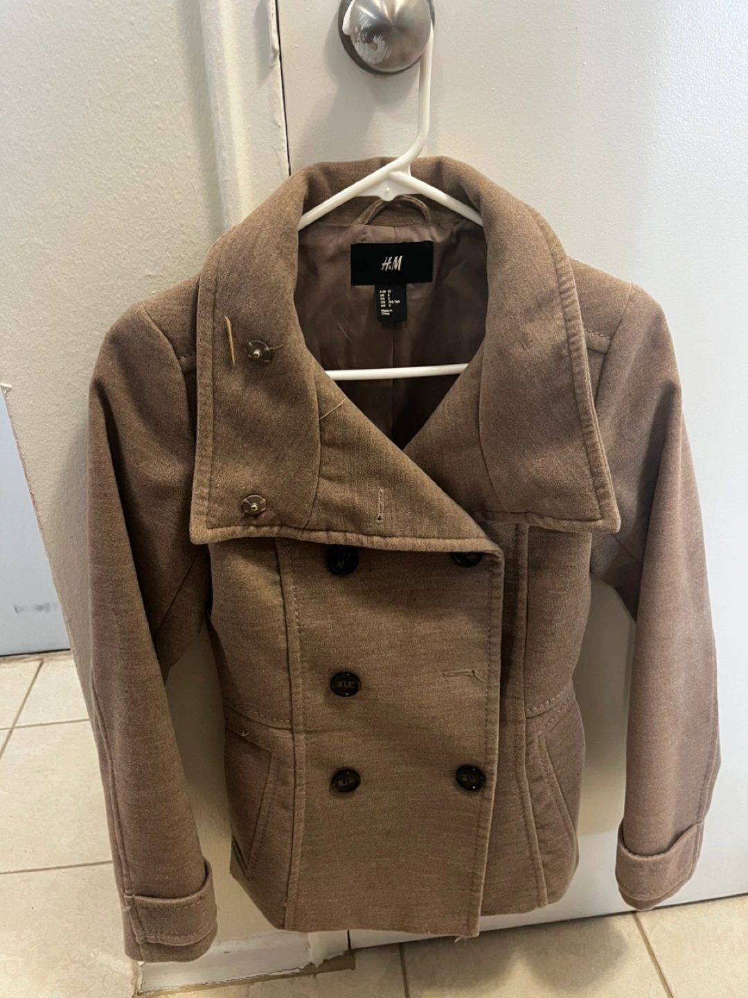 Women's Short Tan Peacoat Double Breasted