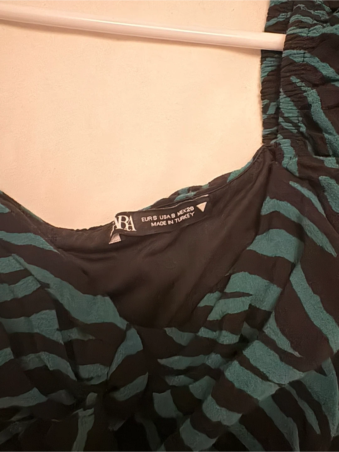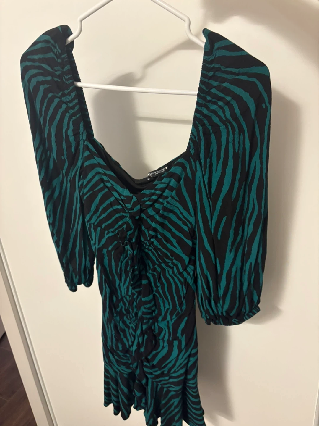 15Cute short Zara dress with a fun zebra print! It's a size small and in good condition. Perfect for a night out or a casual day.