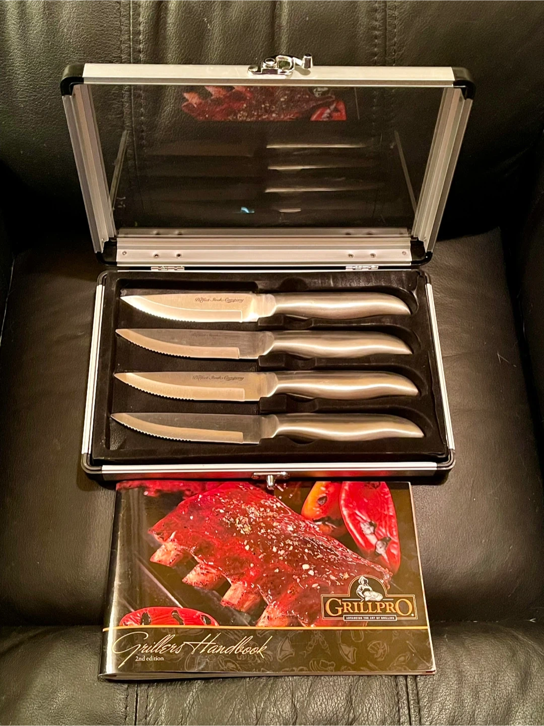 Selling a new set of Perfect Steak Company knives, complete with a GrillPro Griller's Handbook. Brand new in portable case. Perfect for any BBQ enthusiast or steak lover!
