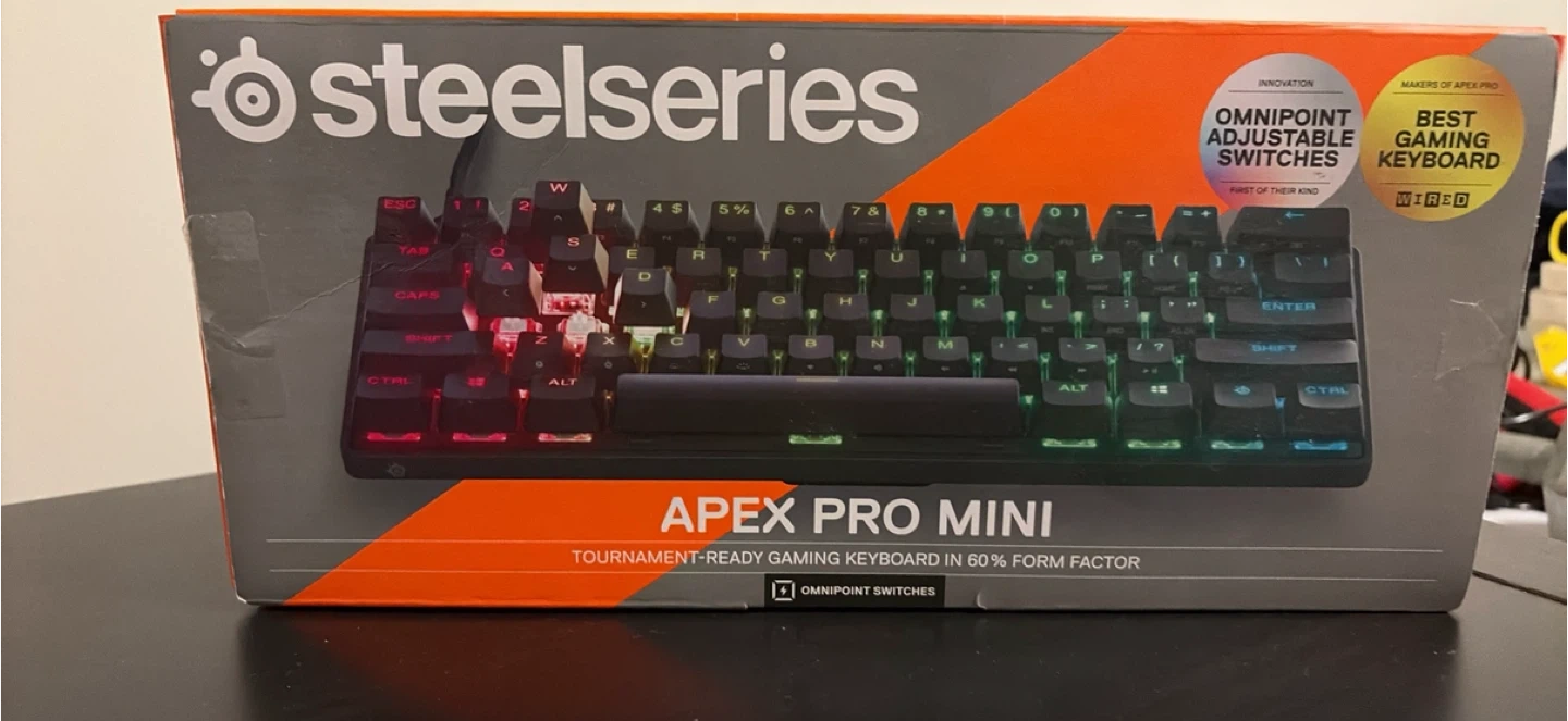 Selling a brand new SteelSeries Apex Pro Mini mechanical keyboard! This keyboard is tournament-ready and comes in a 60% form factor. It features omni-point adjustable switches for customized actuation. Comes with the original box!