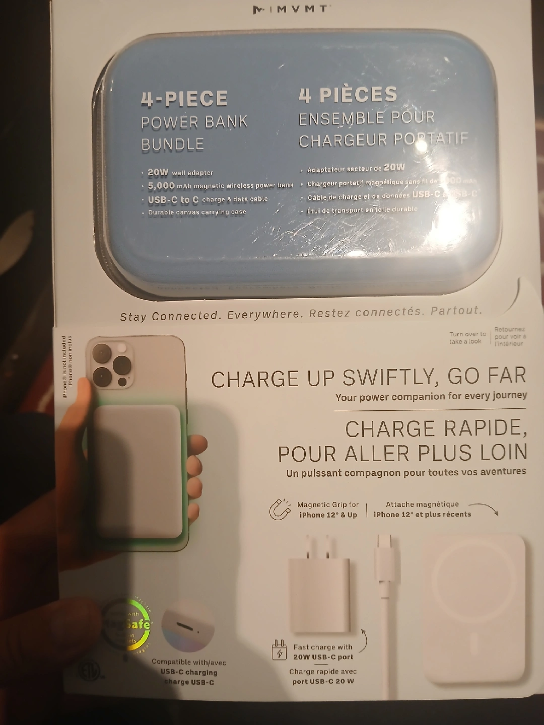 It's compatible with USB-C charging and has a magnetic grip for iPhone 12 and up. Charge up swiftly and go far!