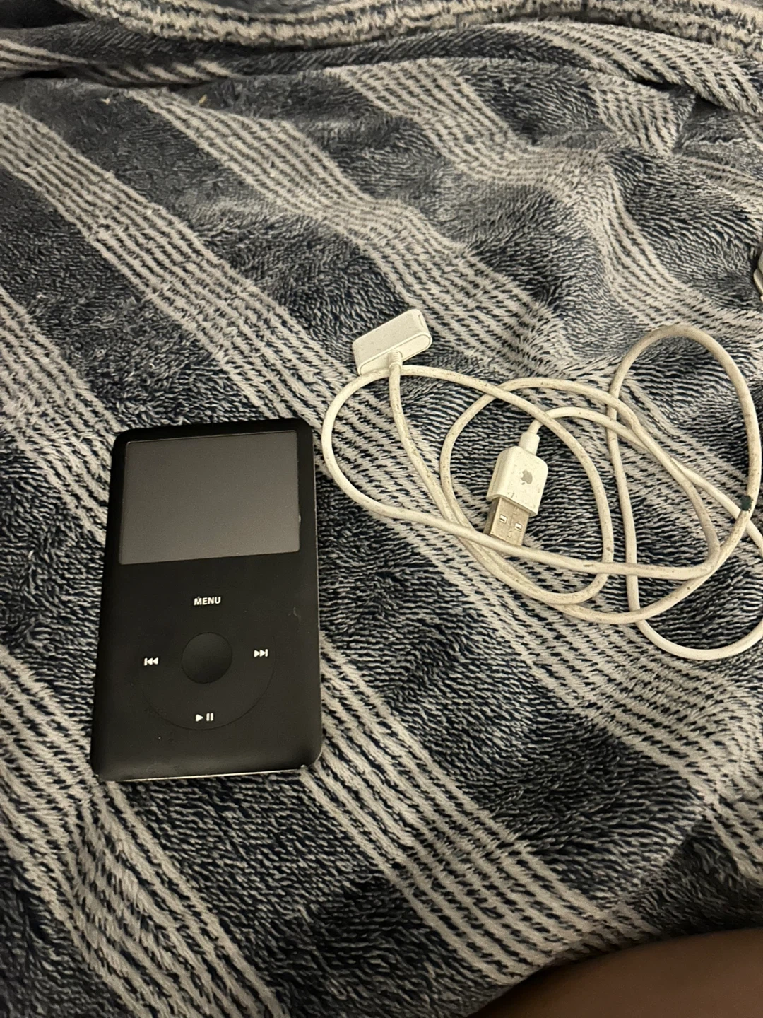 Selling a black Apple iPod Classic. It comes with a charger. It's in good condition and ready for a new home! Vintage! Comes with a variety of songs