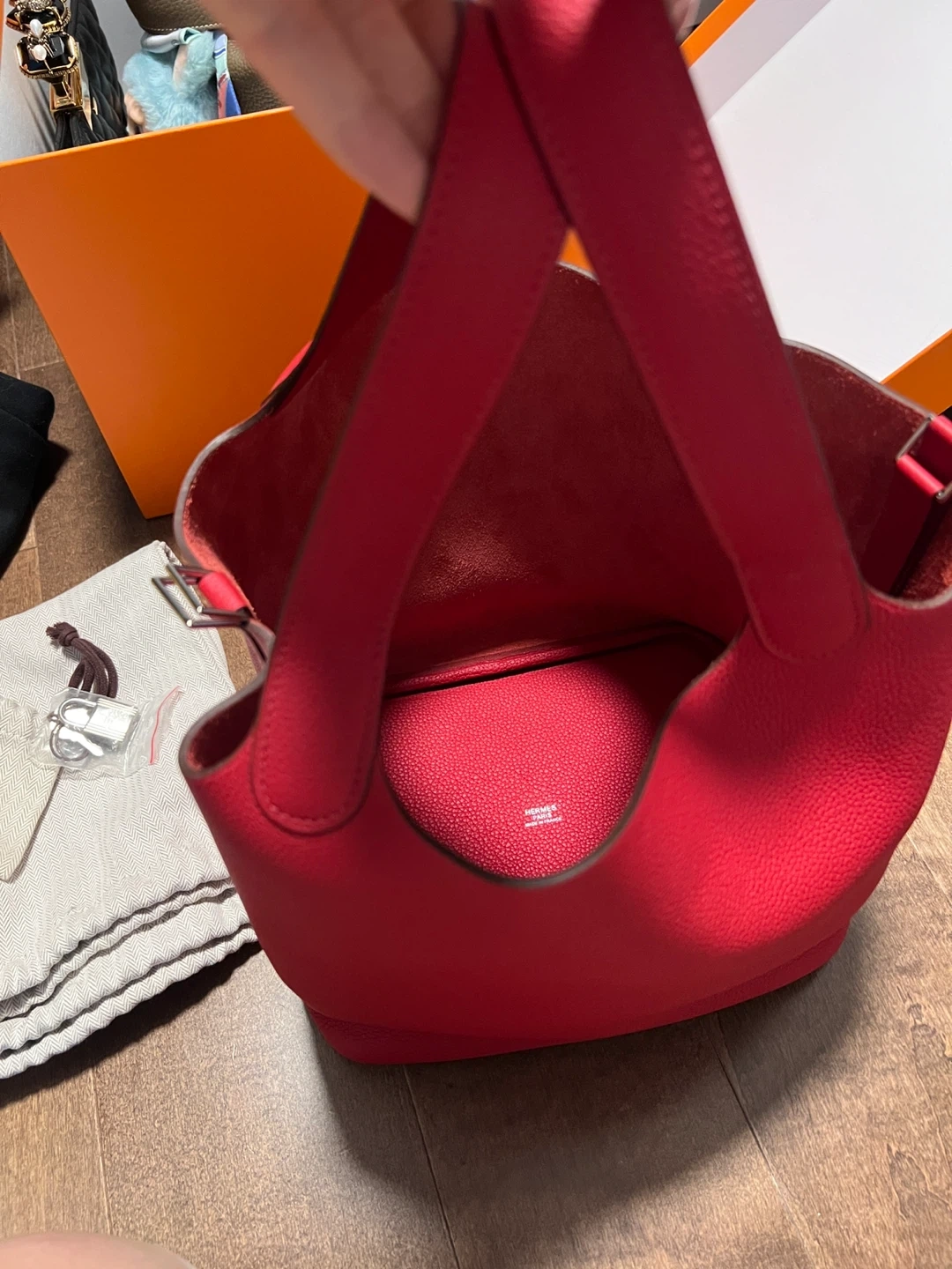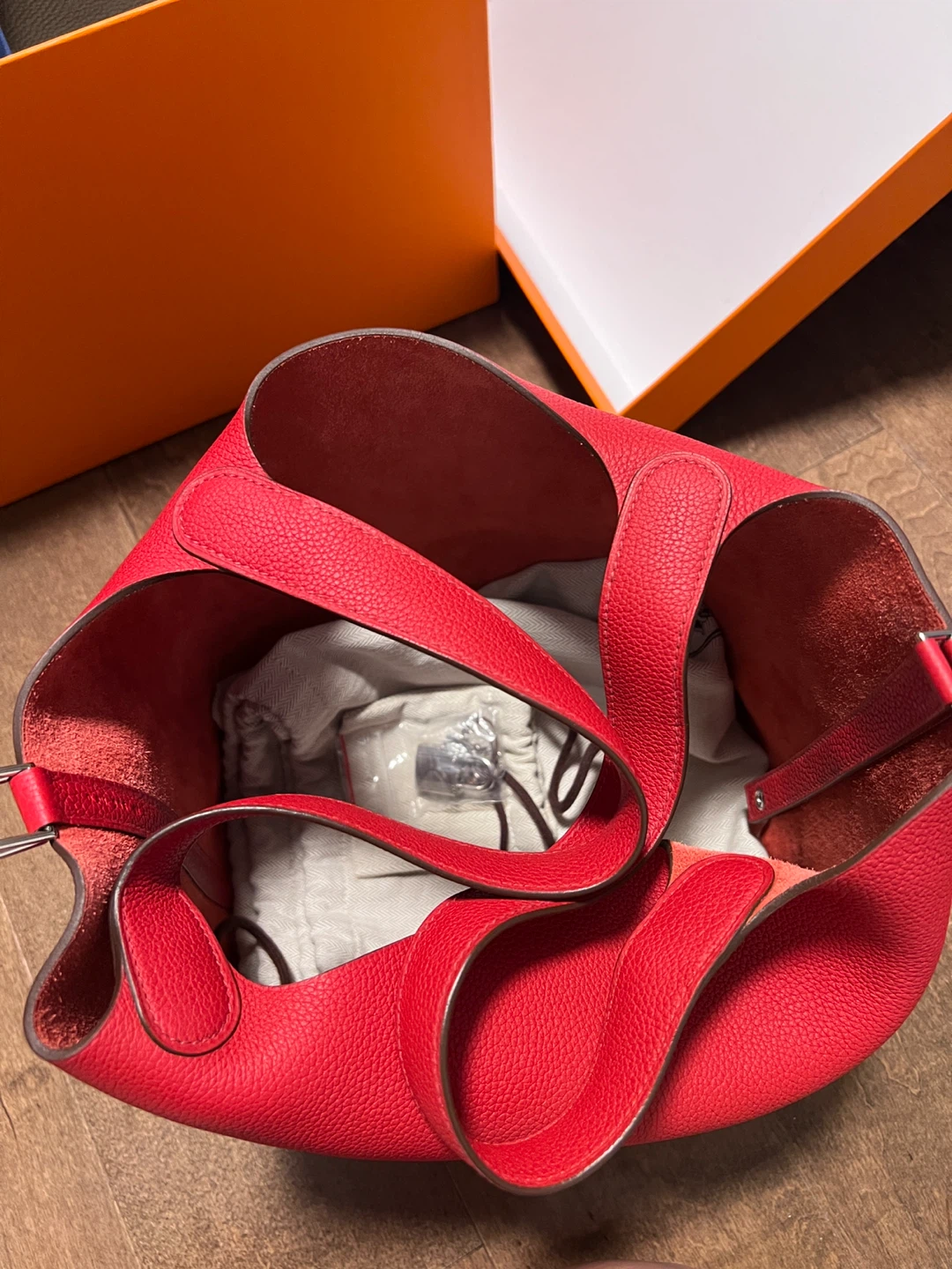 Selling a beautiful Hermès Picotin 18 bag in the stunning Rouge Casaque colour! This iconic picotin bag is crafted from luxurious leather and is in excellent condition. Comes with its original box and dust bag. Perfect for adding a pop of colour to any outfit!
