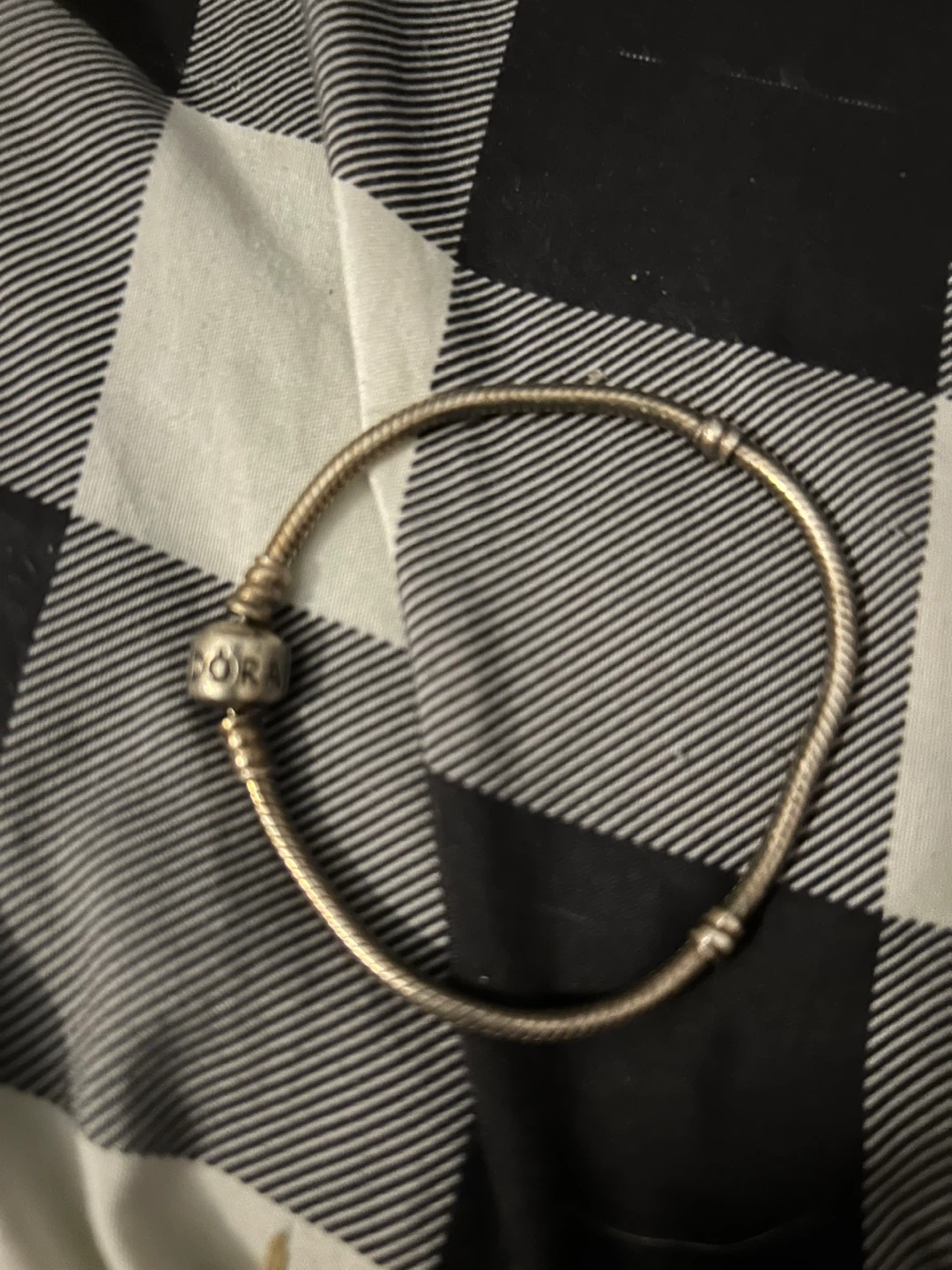 Selling a Pandora charm bracelet. It’s in good condition and ready for a new home! The bracelet features the classic Pandora snake chain design with the Pandora logo on the clasp.
