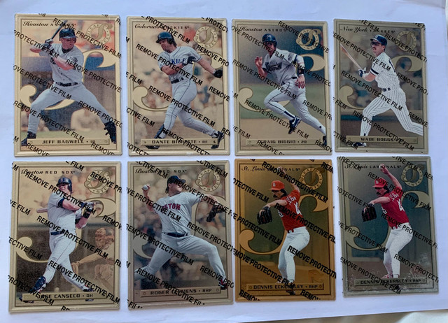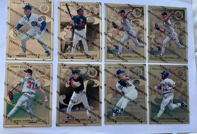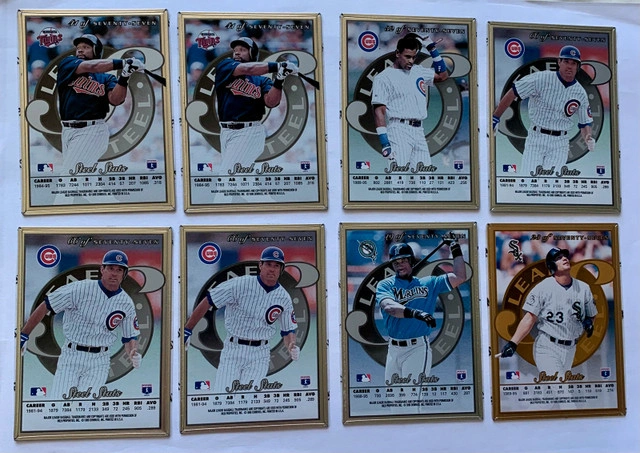 Dive into the nostalgia of the 1996 baseball season with this exclusive collection of 24 Leaf Steel Baseball Trading Cards. A must-have for collectors and enthusiasts alike, each card is a testament to the game's golden era, featuring Major League Baseball's finest players and moments. Crafted with durability in mind, these metal cards from Leaf are a unique addition to any sports memorabilia collection. Whether you're looking to complete your 1996 set or simply own a piece of baseball history, these cards offer a perfect blend of style and sentiment. Individual cards available at $2 each. Let me know if you're interested!