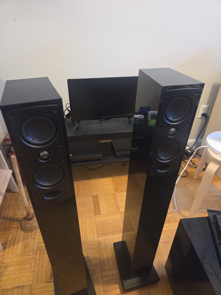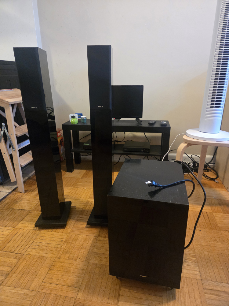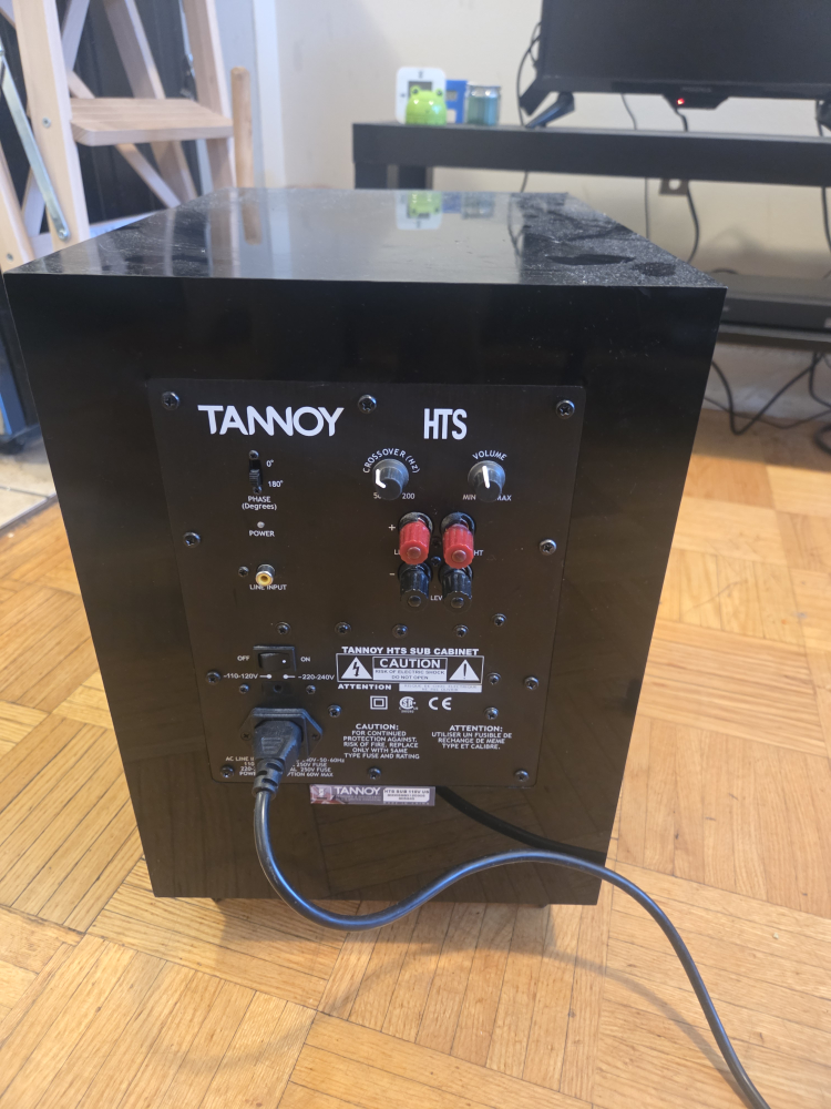 Selling a Tannoy HTS home theatre system. It's in good condition and ready to bring some serious sound to your space! Includes the subwoofer and two tower speakers.