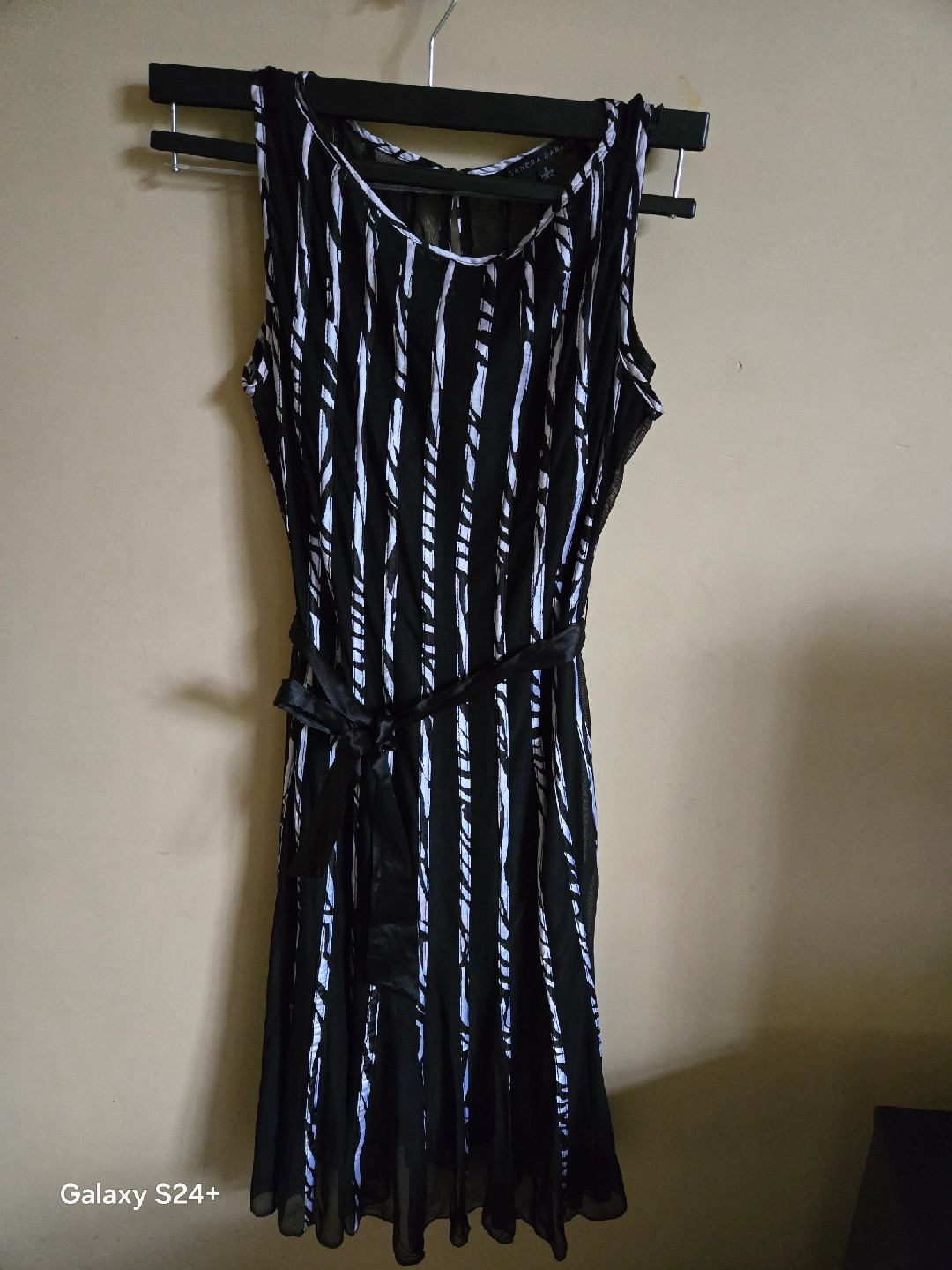 Cute Sandra Darren dress in a black and white pattern! It's a size 6 and features a stylish design. Perfect for a night out or a special occasion