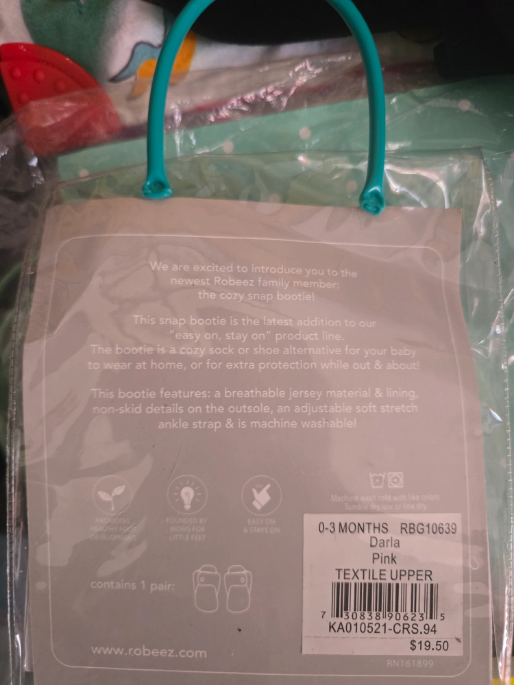 These Robeez Snap Booties are brand new in the original packaging! They're a size 0-3 months and come in a sweet pink color. The booties feature a breathable jersey material and lining, non-skid details on the outsole, and an adjustable soft stretch ankle strap. Machine washable too! Originally $19.50