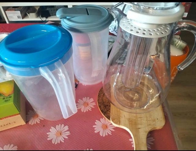This is a set of three pitchers perfect for serving beverages at your next gathering, featuring various sizes and designs to suit different needs. The pitchers are used, but are still in very good condition. They are ready to be filled with your favourite drinks! Each pitcher is designed for easy pouring and handling. * Assorted sizes * Durable plastic and glass * Easy to clean Based on similar listings, I'm pricing this pitcher set at $15. If the ad's still up, then yes, it's still available!