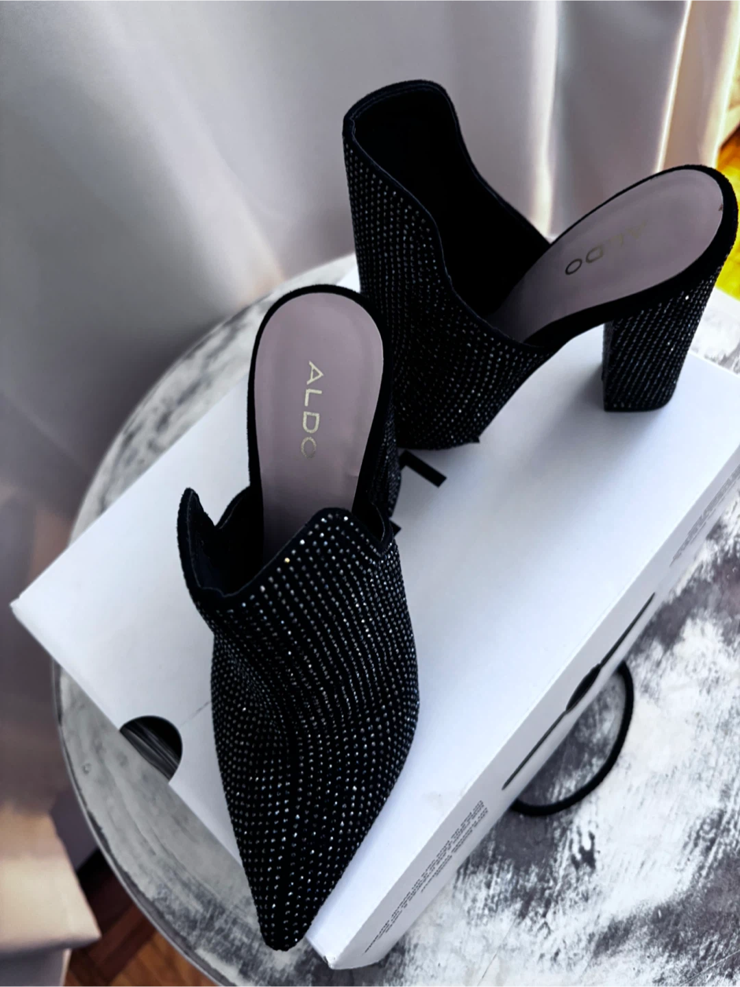 Aldo Etalisien Black Rhinestone Mules - Size 7