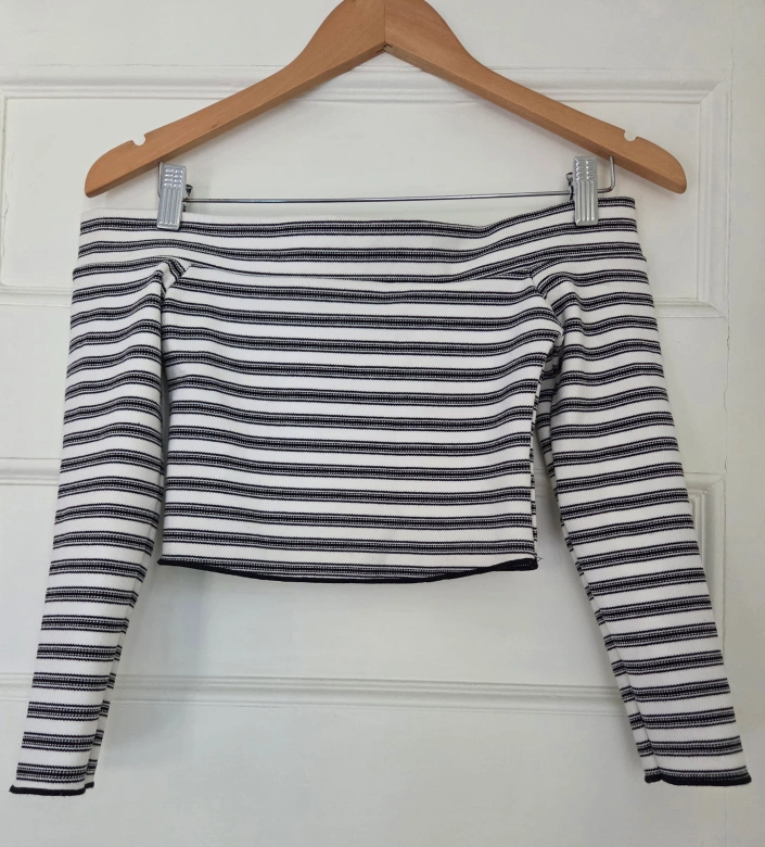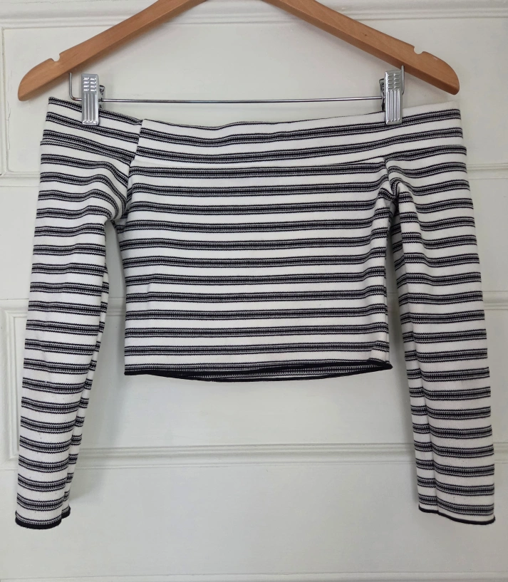 ❣️ Zara Sweater Off Shoulder Crop Top Long Sleeves Striped S