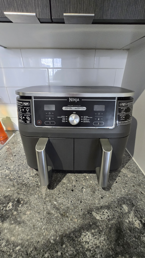 Selling a Ninja Foodi DualZone Air Fryer, model DZ401C. It's a 10-quart, 6-in-1 air fryer that lets you cook two different foods at the same time. It has DualZone Technology. Great for making crispy fries, chicken wings, and more!