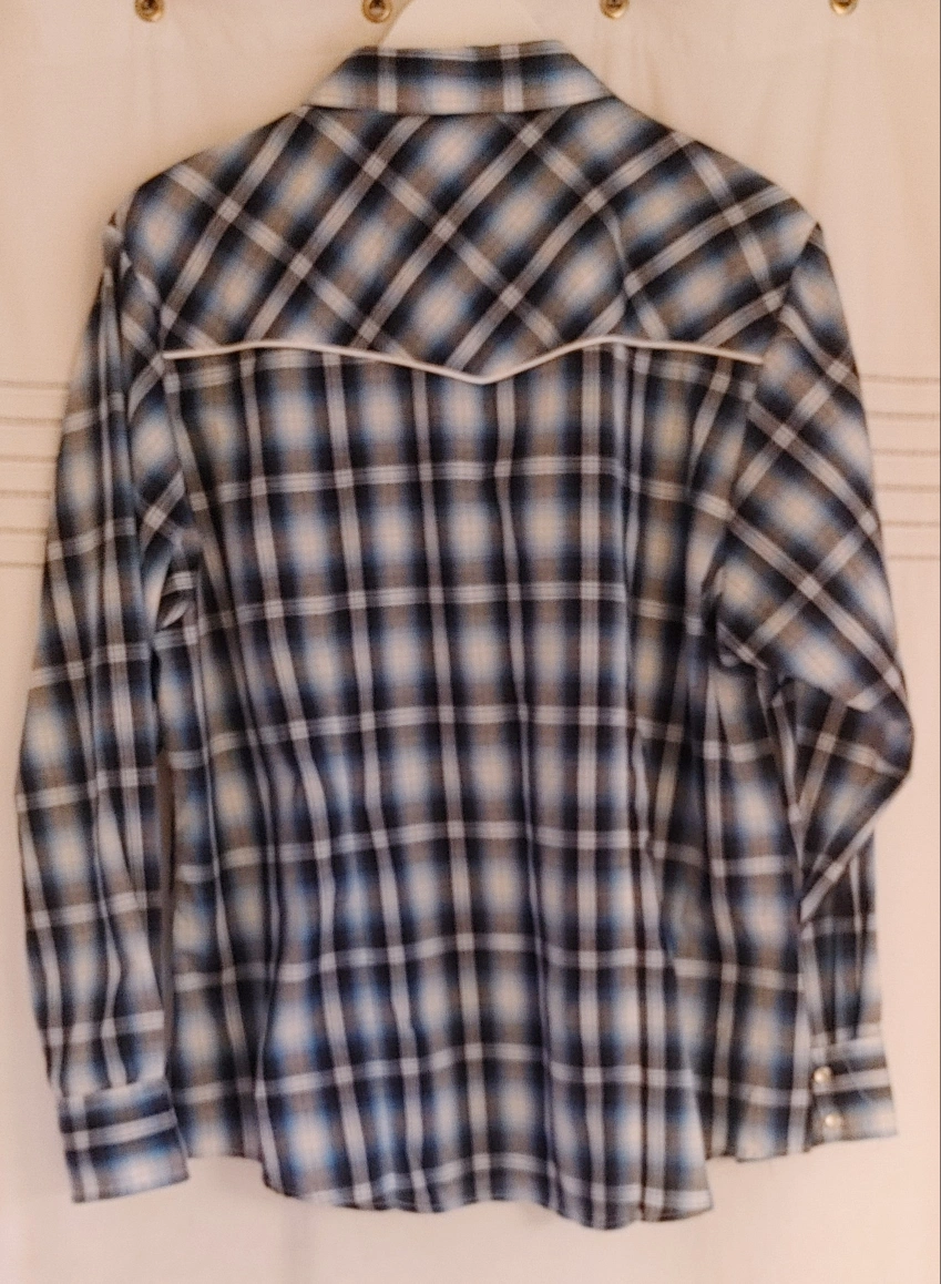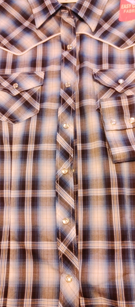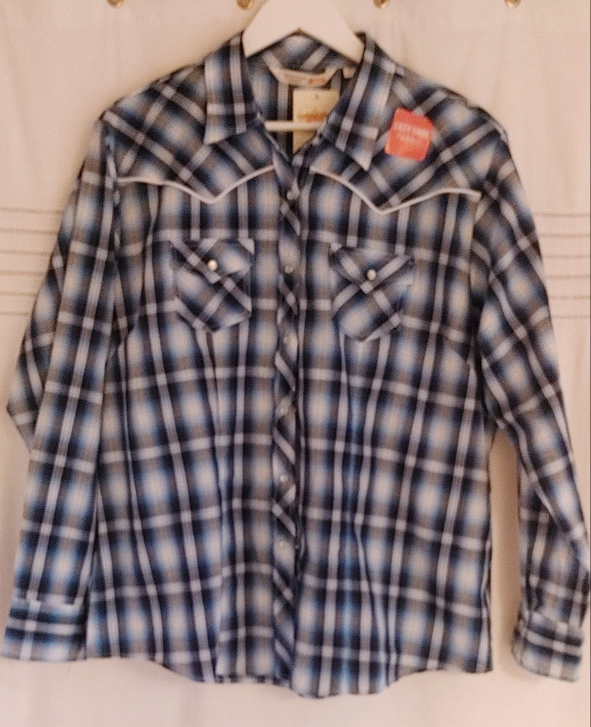 86Mens Cumberland Outfitters Ely western style plaid shirt in size XXL. Shirt fits more like a men's large. Mint condition with tags still attached. Snap up closures on front and cuffs with one button at the top. No rips or stains. Smoke free home pick up Mt.Brydges cash only.