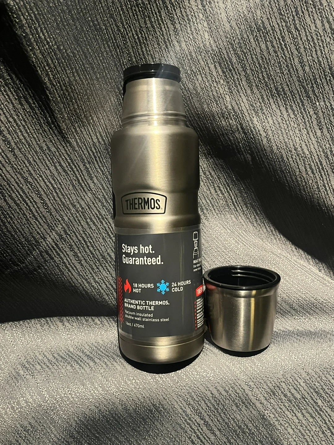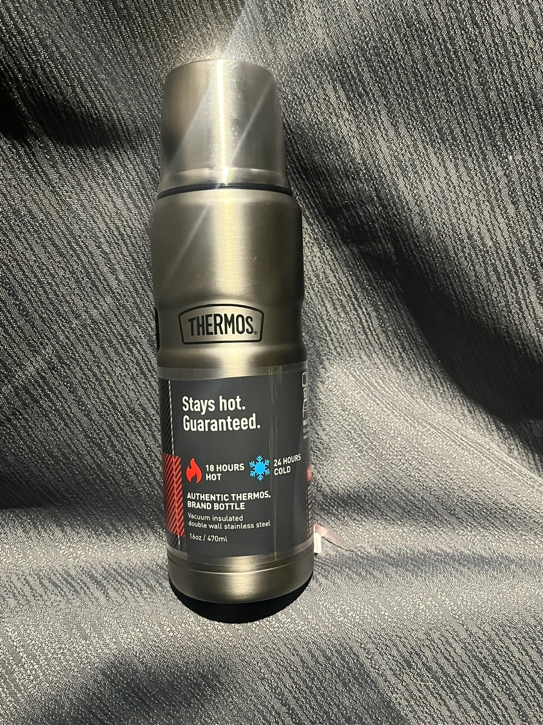 1000+Keep your drinks hot or cold with this Thermos authentic brand bottle! It's vacuum insulated with double-wall stainless steel, ensuring your beverage stays at the perfect temperature. Stays hot for 18 hours and cold for 24 hours. It has a 16oz/470mL capacity