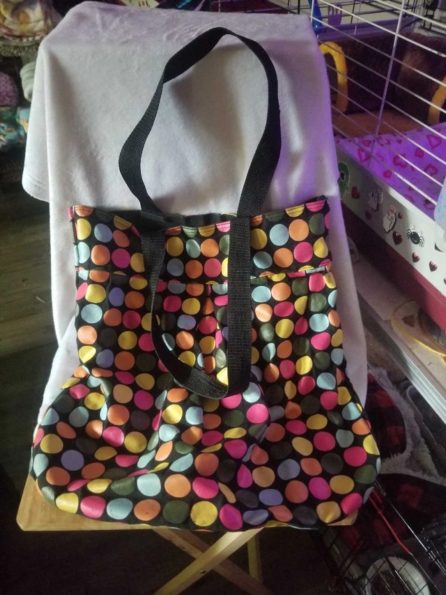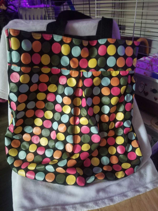 This Concept One tote bag features a vibrant polka dot pattern and sturdy black straps, perfect for carrying your essentials in style. Being pre-loved, it's in good condition and ready for a new adventure. Here are some details about the bag: * Brand: Concept One * Pattern: Polka Dot * Colour: Multi-coloured * Straps: Black If the ad is up, the bag is available. Don't miss out on adding this splash of colour to your day!
