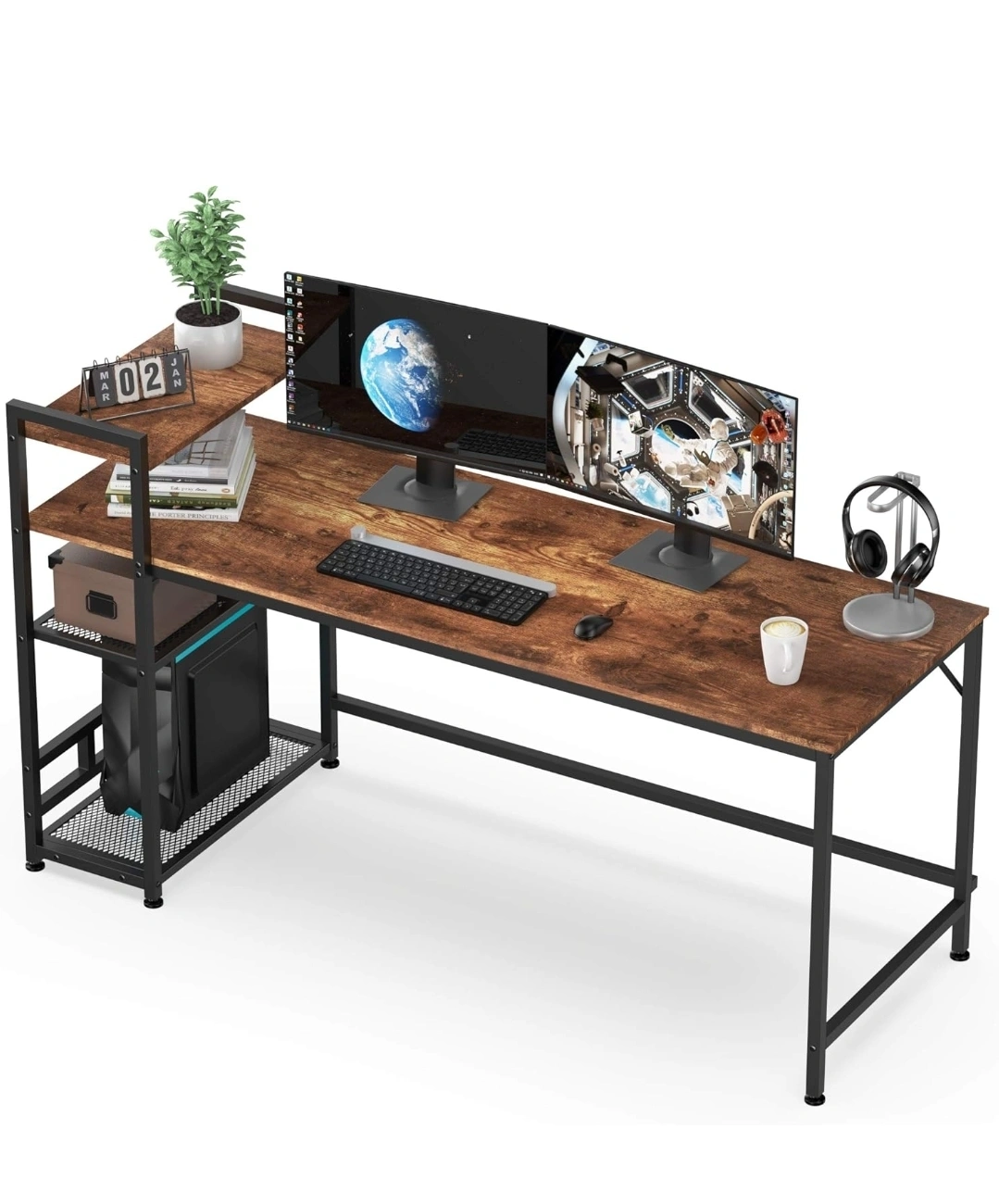 Looking to upgrade your workspace? Check out this rustic brown computer desk with built-in shelves! It has a cool, industrial vibe and offers plenty of room for your monitors, keyboard, and other essentials. The shelves are perfect for storing books, files, or even a small plant to brighten up your day.