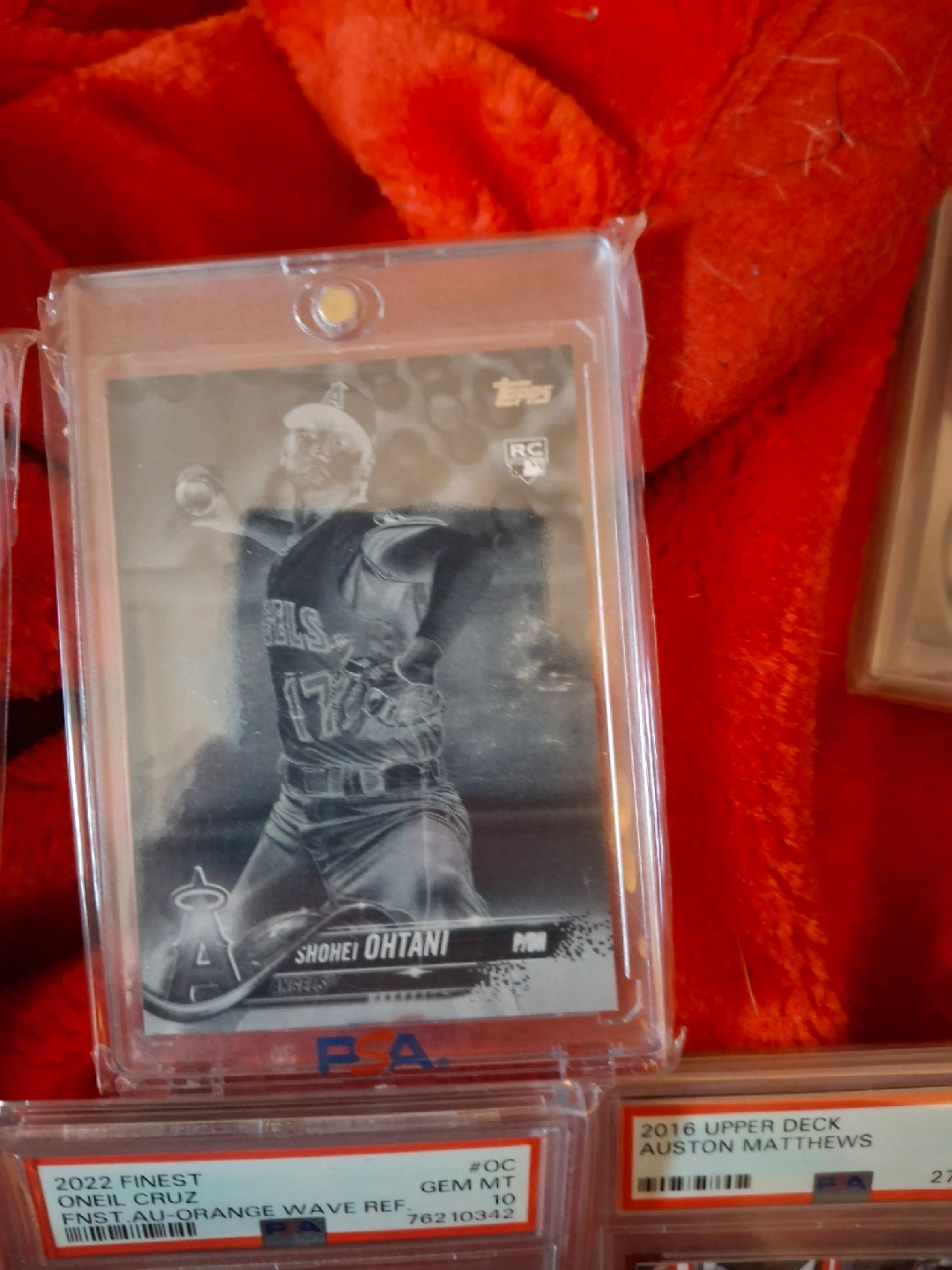 Selling a Shohei Ohtani Topps rookie card. There's also a 2022 Finest Oneil Cruz card and a 2016 Upper Deck Auston Matthews card.