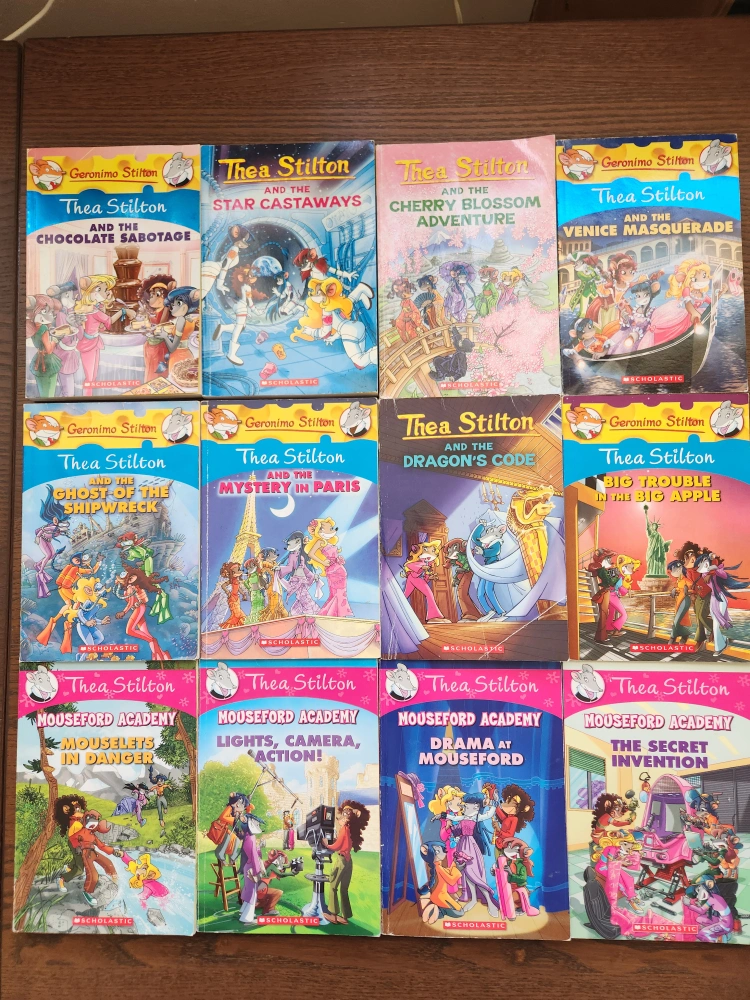 Set of 12 books from popular Thea Stilton book series for kids aged about 7-10. Ranfe from very good to good used condition.