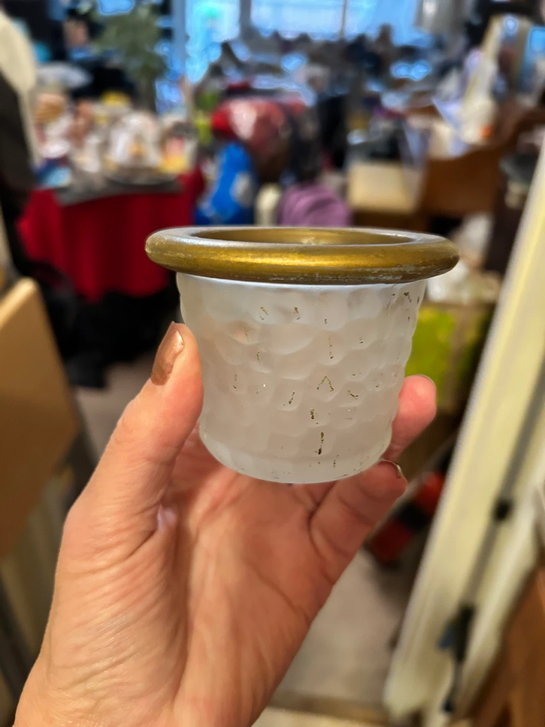 1 / 31 / 3Buy & SellFrosted Glass Candle HolderFrosted Glass Candle Holder$3I'm selling two small frosted glass candle holder with a gold rim. It's in great condition and ready to add a warm glow to your spaceConditionGoodWHERE TO MEETUpper east sideView MapSELLERverifiedMelissaYorkville34930 reviews0 chats·0 favorites·36 viewsSEND CHAT TO SELLERHi Melissa! I’m interested in your listing.Hi Melissa! I’m interested in your listing.Get the Karrot app to chatSign In to chat