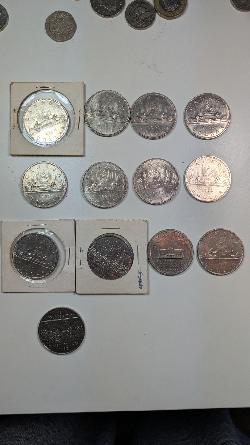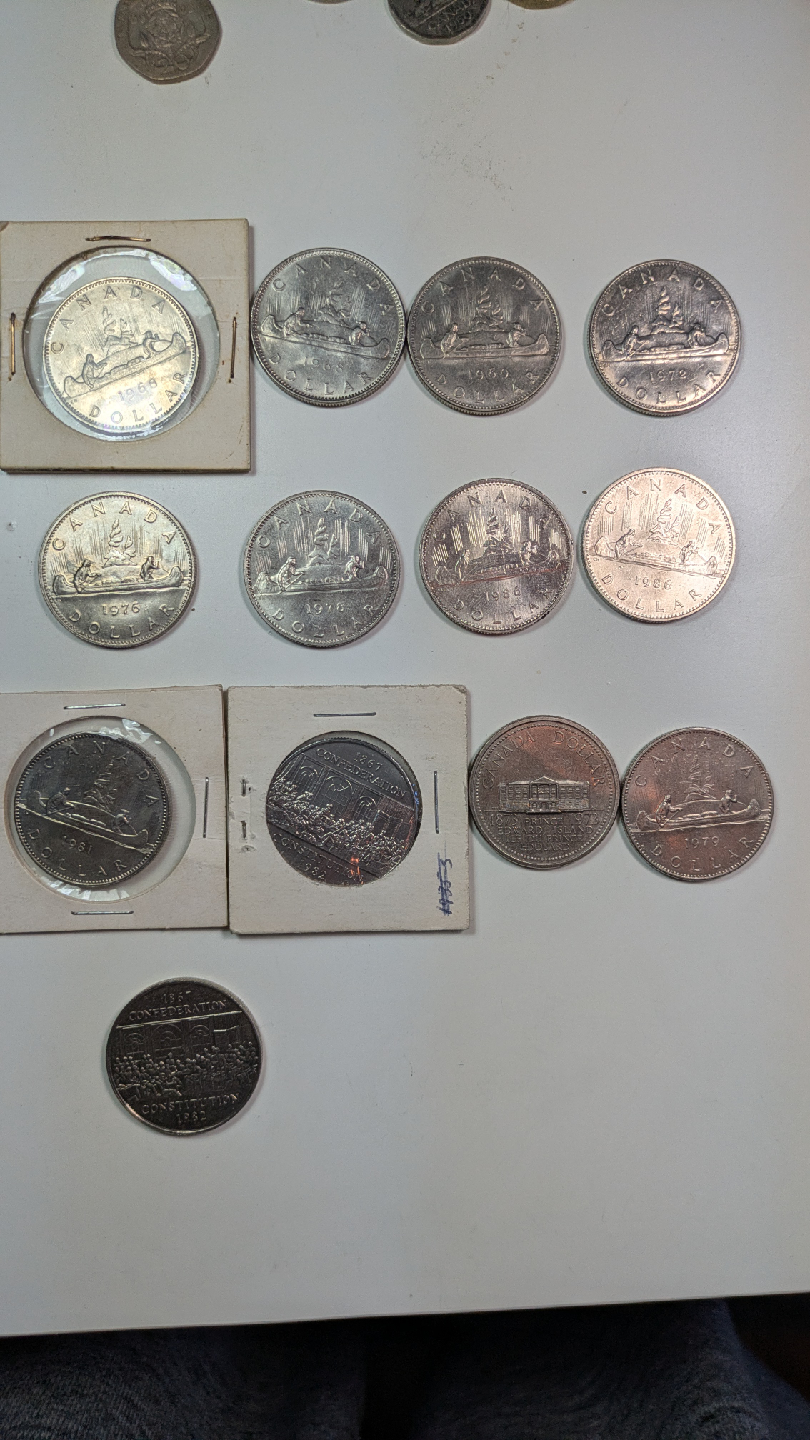 Selling a collection of vintage Canadian dollars and 50 cent coins. Some are in protective cases, dating back to the 1960s ,1970s and 1980's. Perfect for collectors!