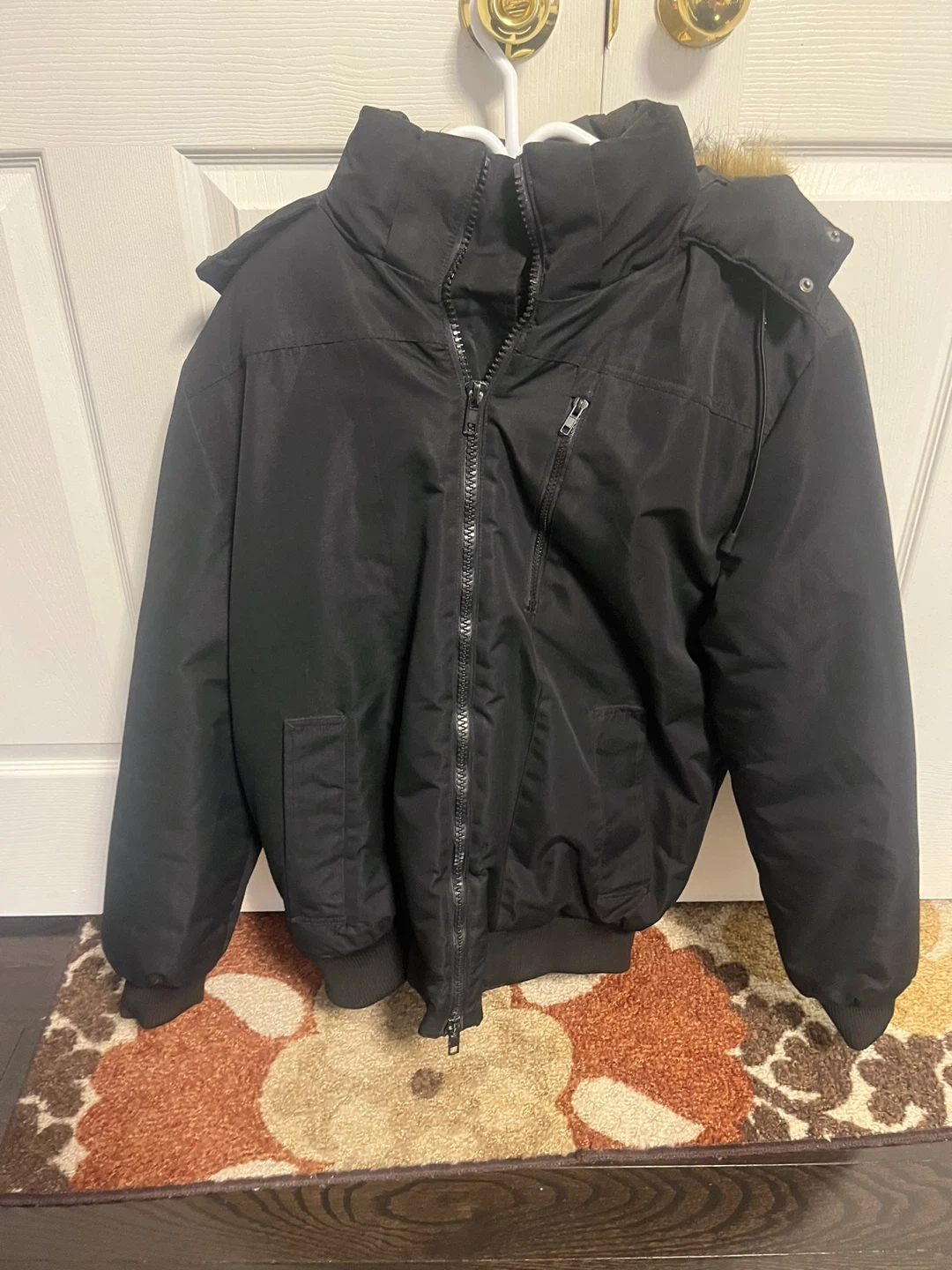 Selling a Bluenotes winter jacket in black. It's a size large and features a faux fur trim on the hood. Great for keeping warm during the cold Canadian winters!