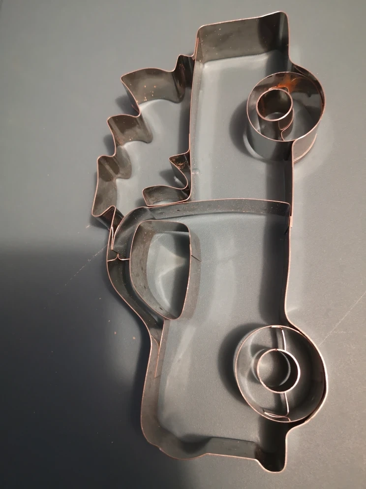 Here's a cookie cutter shaped like a truck! It's perfect for making cookies for kids or anyone who loves trucks. It's in great condition and ready for a new home