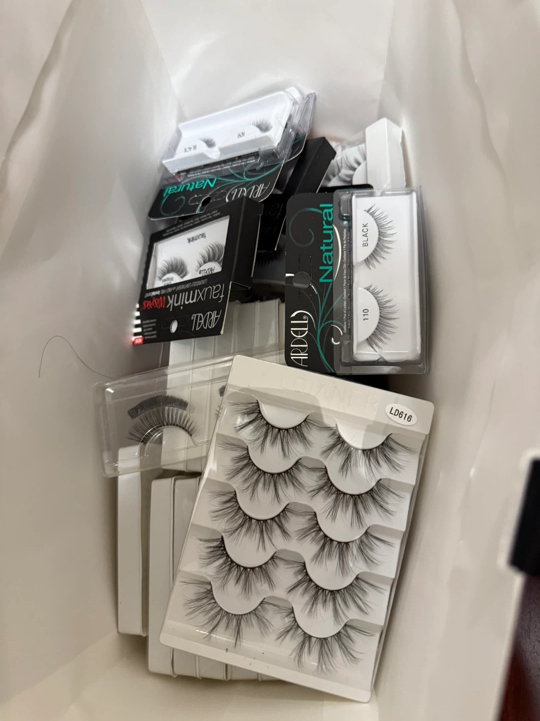 A selection of Ardell false eyelashes, including Fauxmink Wispies, Natural 110, and other styles. Perfect for adding some glam to your look!