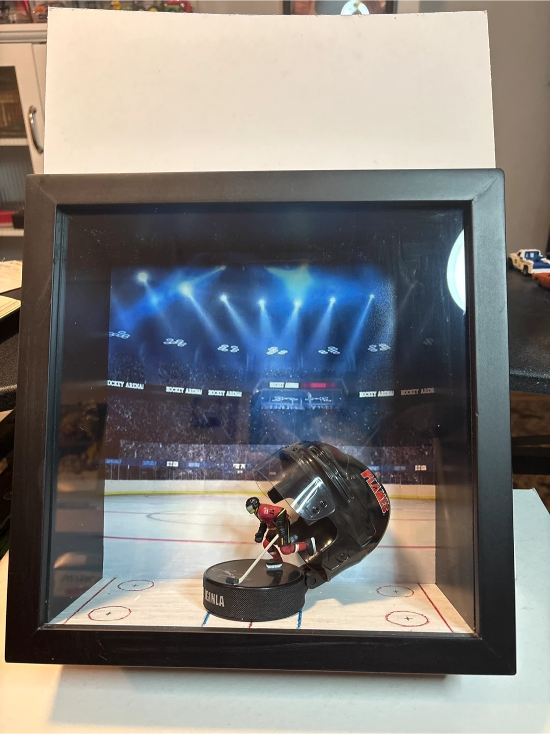 70Selling a shadow box featuring Jerome Iginla on a hockey rink background. It's a cool piece for any hockey fan or collector!