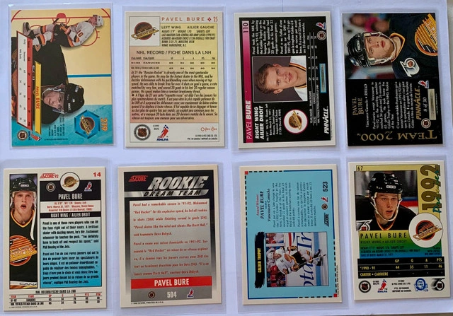 I'm offering a collection of Pavel Bure hockey cards, including rookie cards and other assorted cards. All cards are in excellent condition, perfect for any hockey or Canucks collector. It's come to my attention that my collection is too large and I need to downsize. It's your lucky day! If you see this ad, it means the cards are still available, so don't miss out!