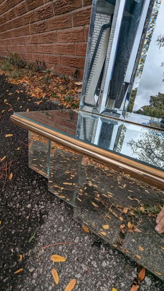 The stepped geometry and gold edge detailing make it a perfect statement piece for mid-century, Hollywood Regency, or glam interiors.