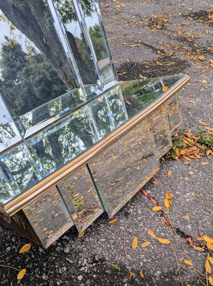 Vintage Art Deco Revival Mirror w/Shelf