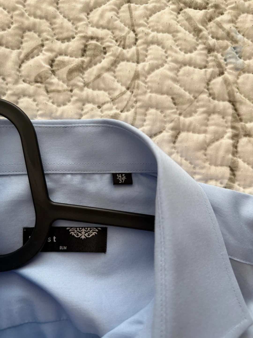 Selling a light blue NEXT brand dress shirt in slim fit. Size is 14.5 inch neck and 37 inch sleeve length. Perfect for work or a night out!