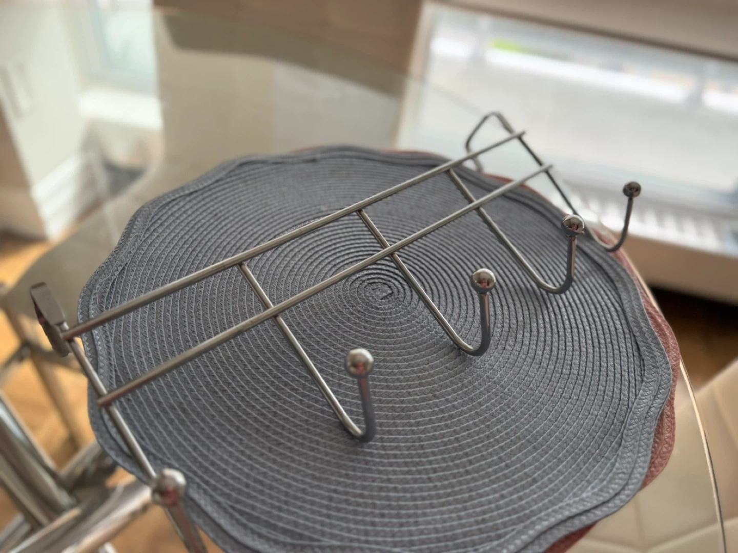 Here's a handy over-the-door hook rack! It's perfect for adding extra hanging space in your closet, bathroom, or entryway. It's in great condition and ready to use.