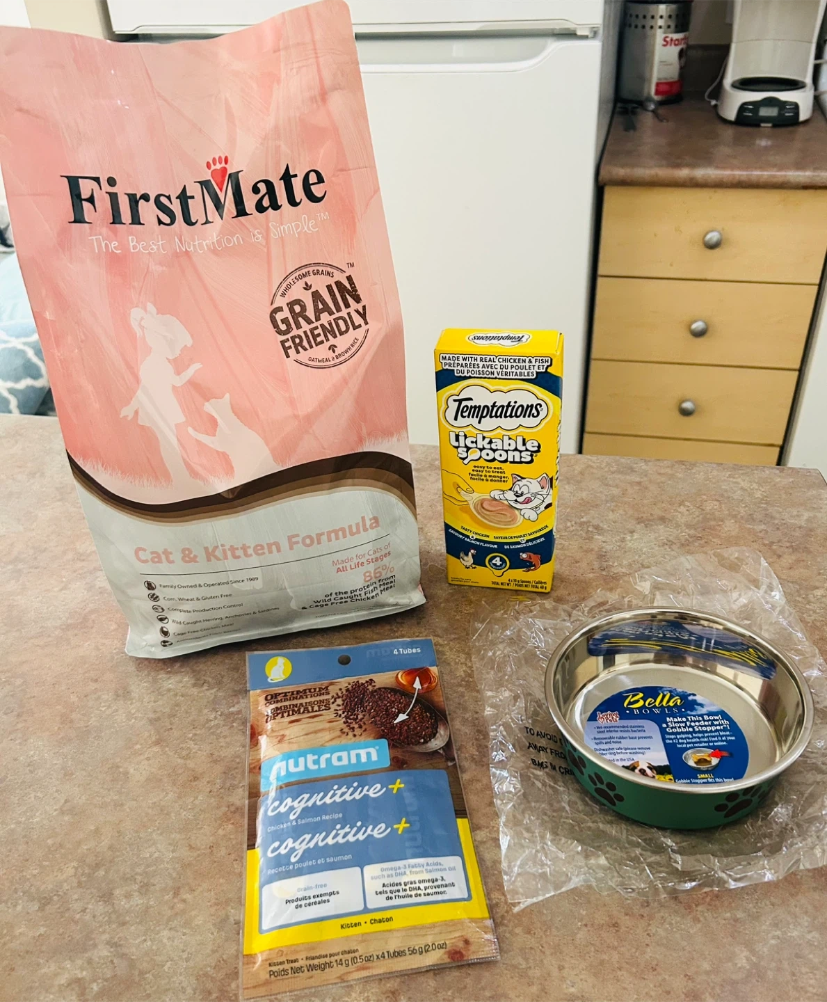 Get everything you need to welcome your new furry friend with this complete set of brand new cat and kitten supplies, including high-quality FirstMate grain-friendly cat and kitten formula,