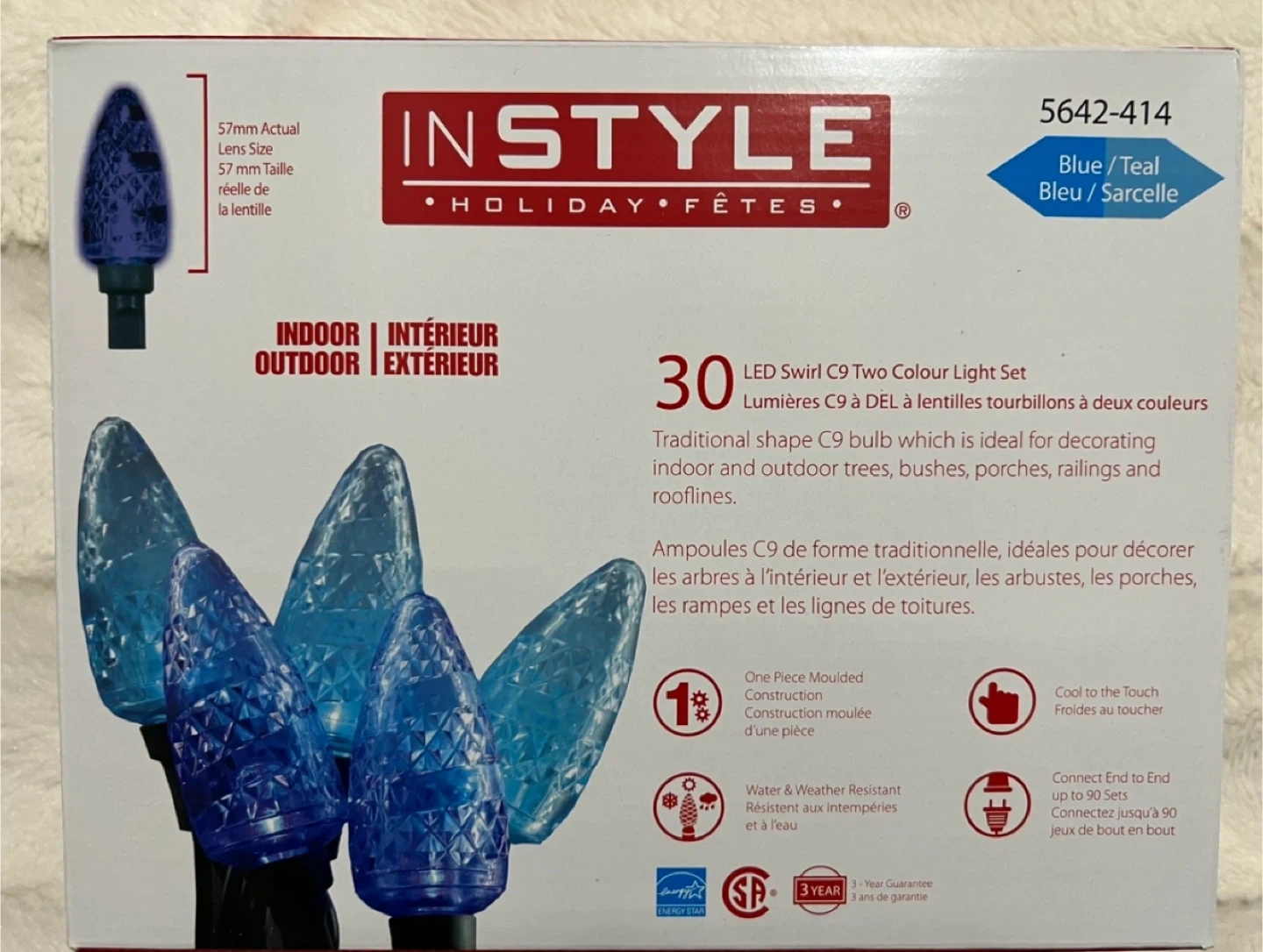 Brand new in a box Christmas lights 30 LED swirlC9, blue and teal Lighted length 19.33”, extensible 4 boxes available $20.00 each box Price is firm Pickup only - North Oshawa No holds - fastest pickup