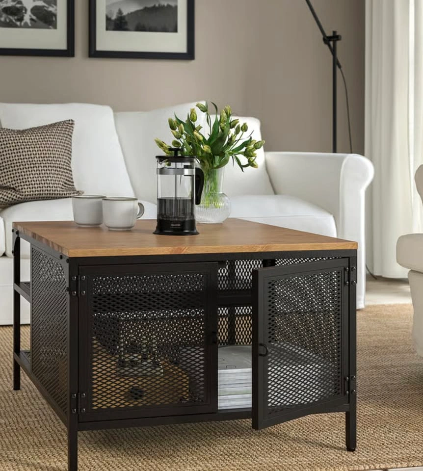 Wicker Coffee Table with Glass Top