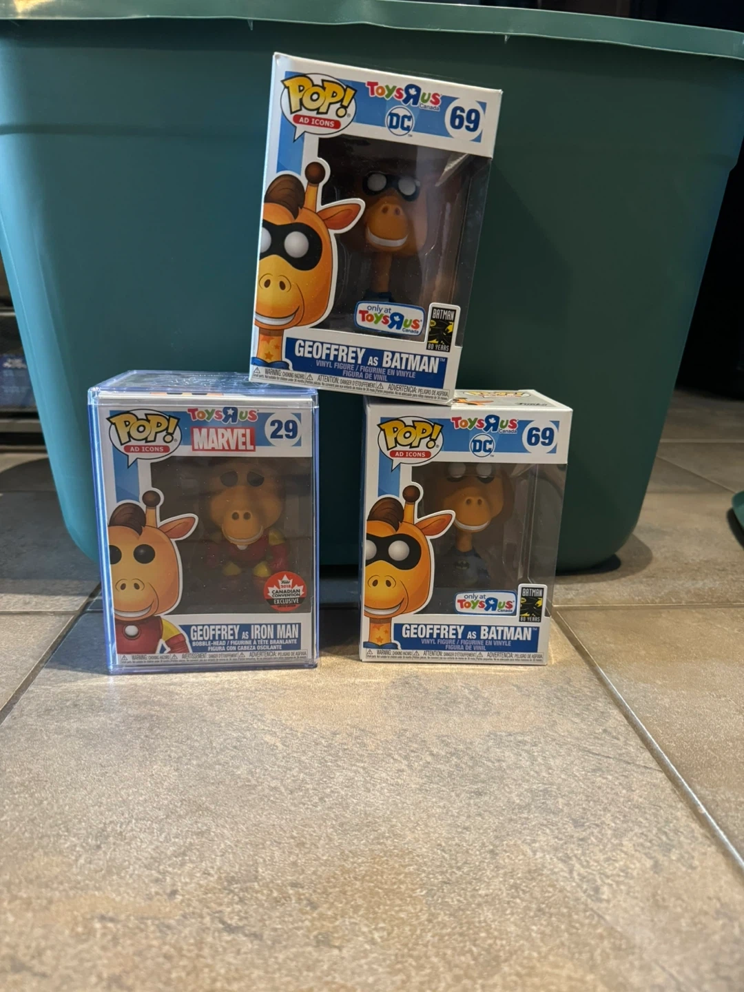 25Selling a couple of Funko POP! AD Icons figures, Geoffrey as Batman and Geoffrey as Iron Man. Both are ToysRus exclusives. The Iron Man figure is a Canadian exclusive! take both for 75$