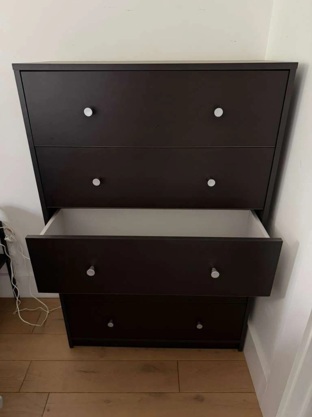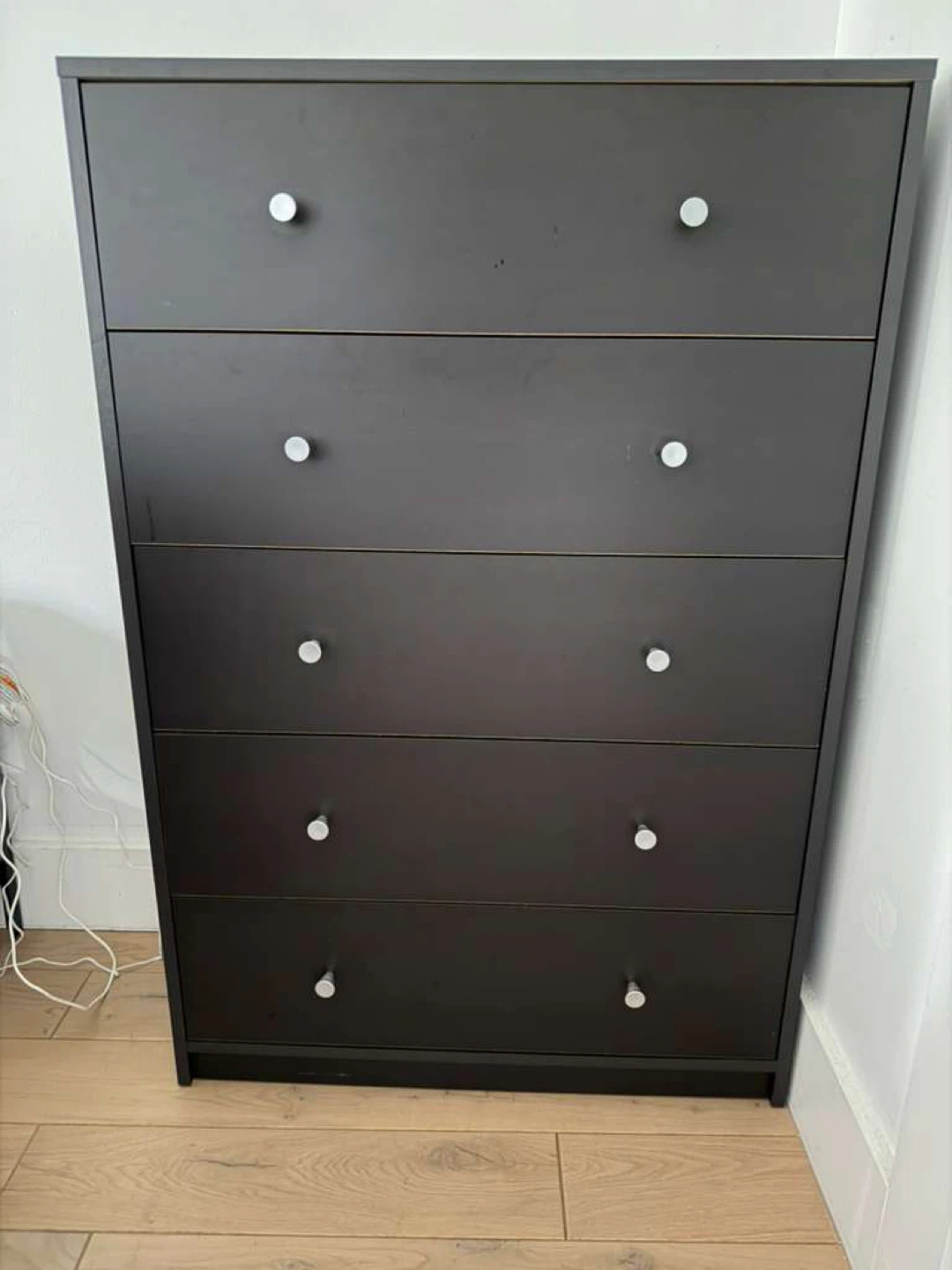 Selling a dark brown dresser with five drawers. It's in good condition and ready for a new home! Perfect for adding storage to any bedroom or living space