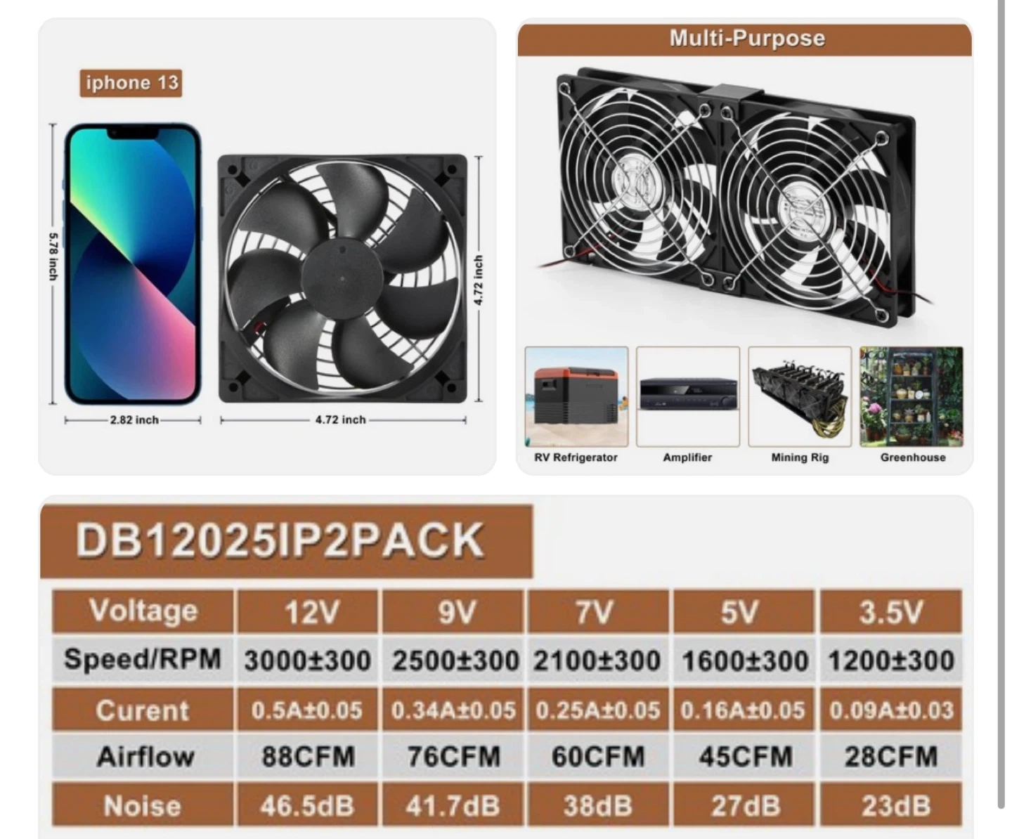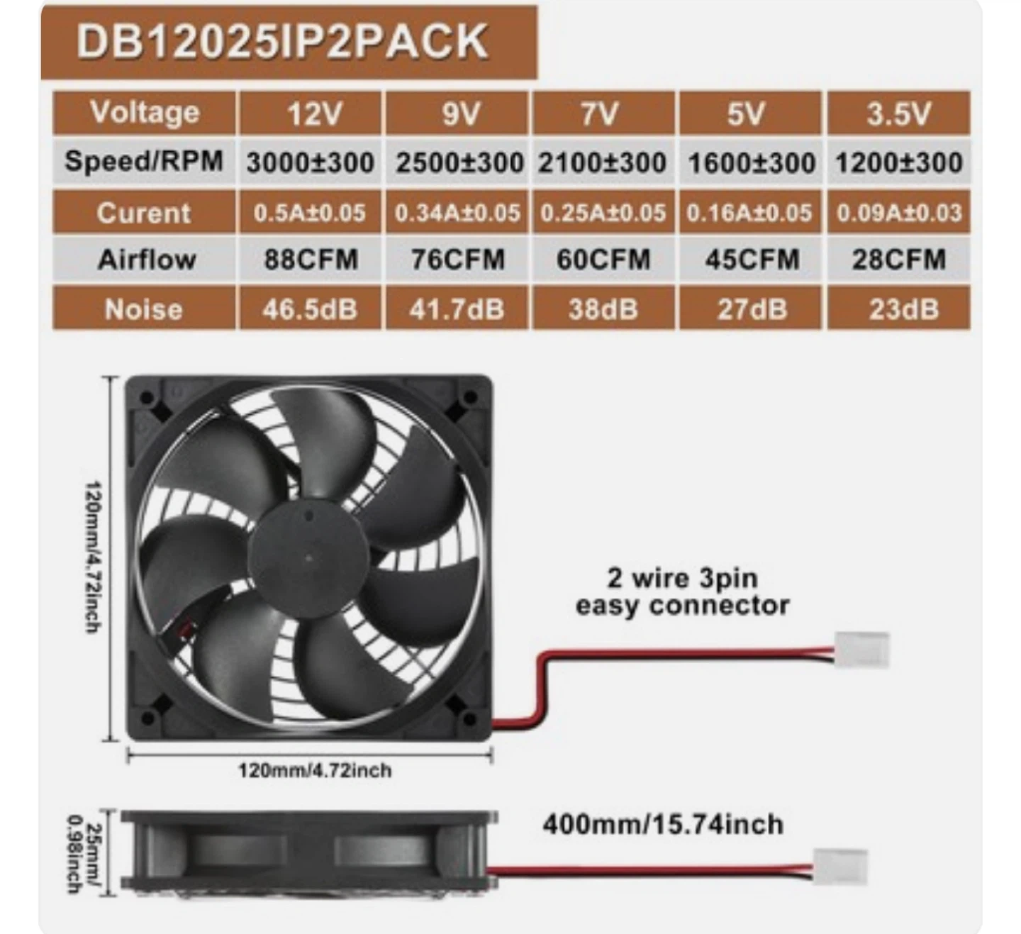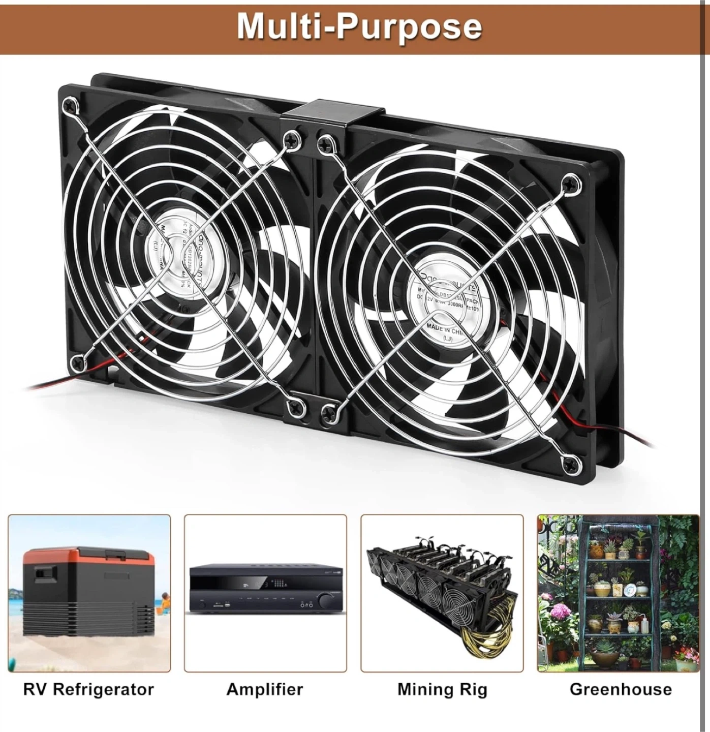 Pano-Mounts 2-Pack IP67 Waterproof Silent 12V DC Cooling Fan - 120mmx25mm 4.72inch High-Speed 3000RPM Dual Ball Bearing 2 Wire 3Pin Exhaust Fan for RV Fridge Brand new in box