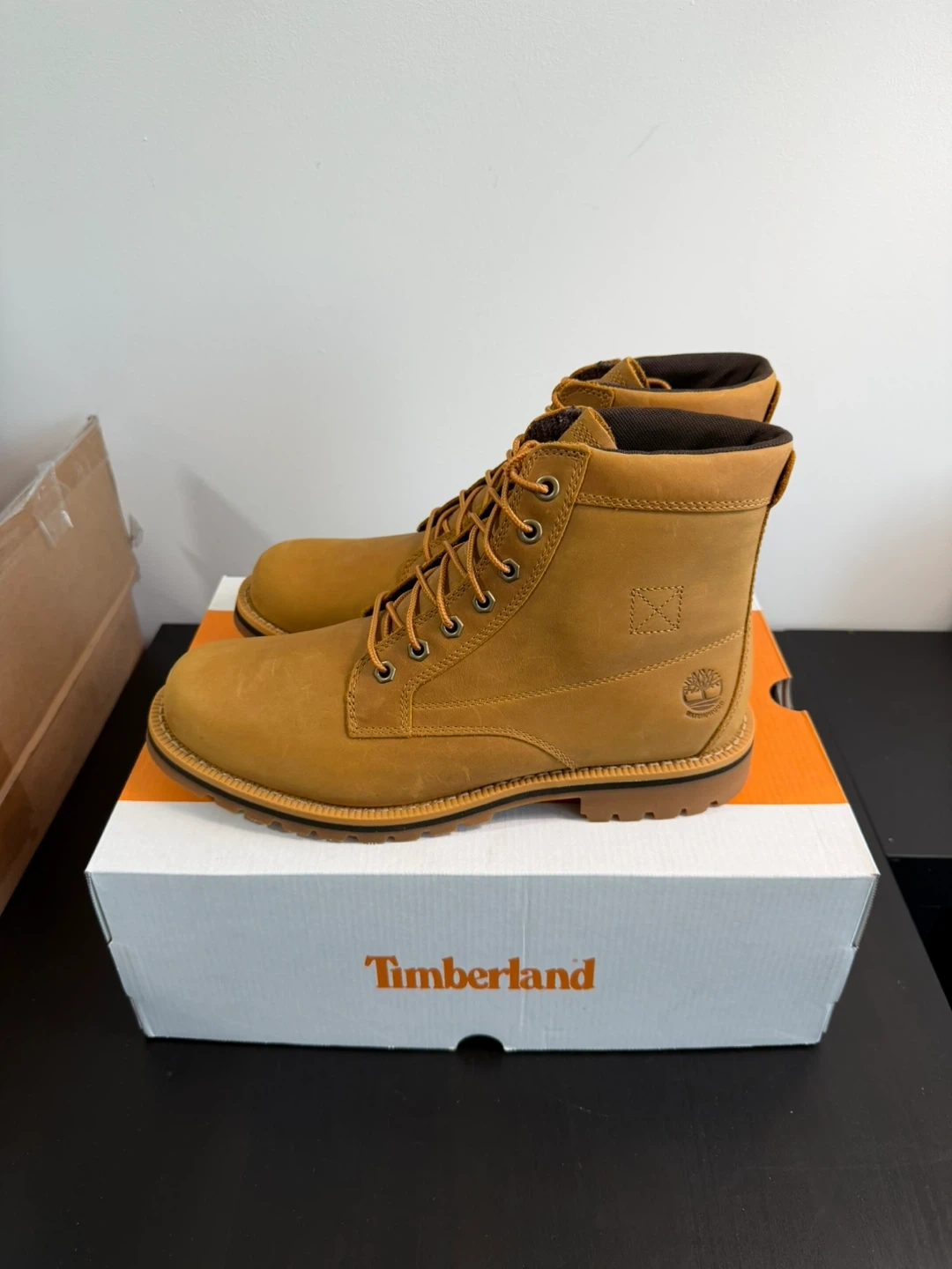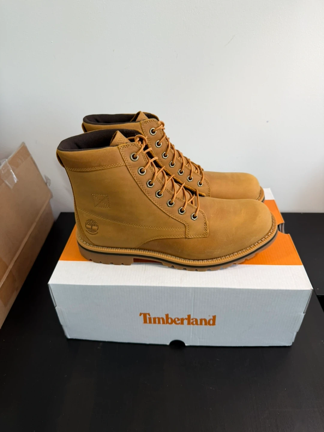 131Item Name: Timberland Redwood Falls Mid Lace - Waterproof Shoes Colour: Wheat Size: Mens’s 9 Pickup Location: Jarvis and Dundas Intersection Product Condition: Brand new, never worn Included in Package: • Timberland 6-inch waterproof boots, size 9 • Original Timberland box and all packaging Retail Price: $170 plus taxes. Item available for pickup only. Delivery will not be provided.