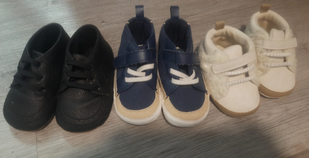 Selling a bundle of baby shoes, perfect for little ones aged 3-6 months! Includes three pairs in different styles and colours: black, navy blue, and cream. Great for keeping tiny toes warm and stylish!