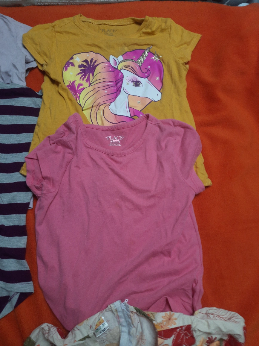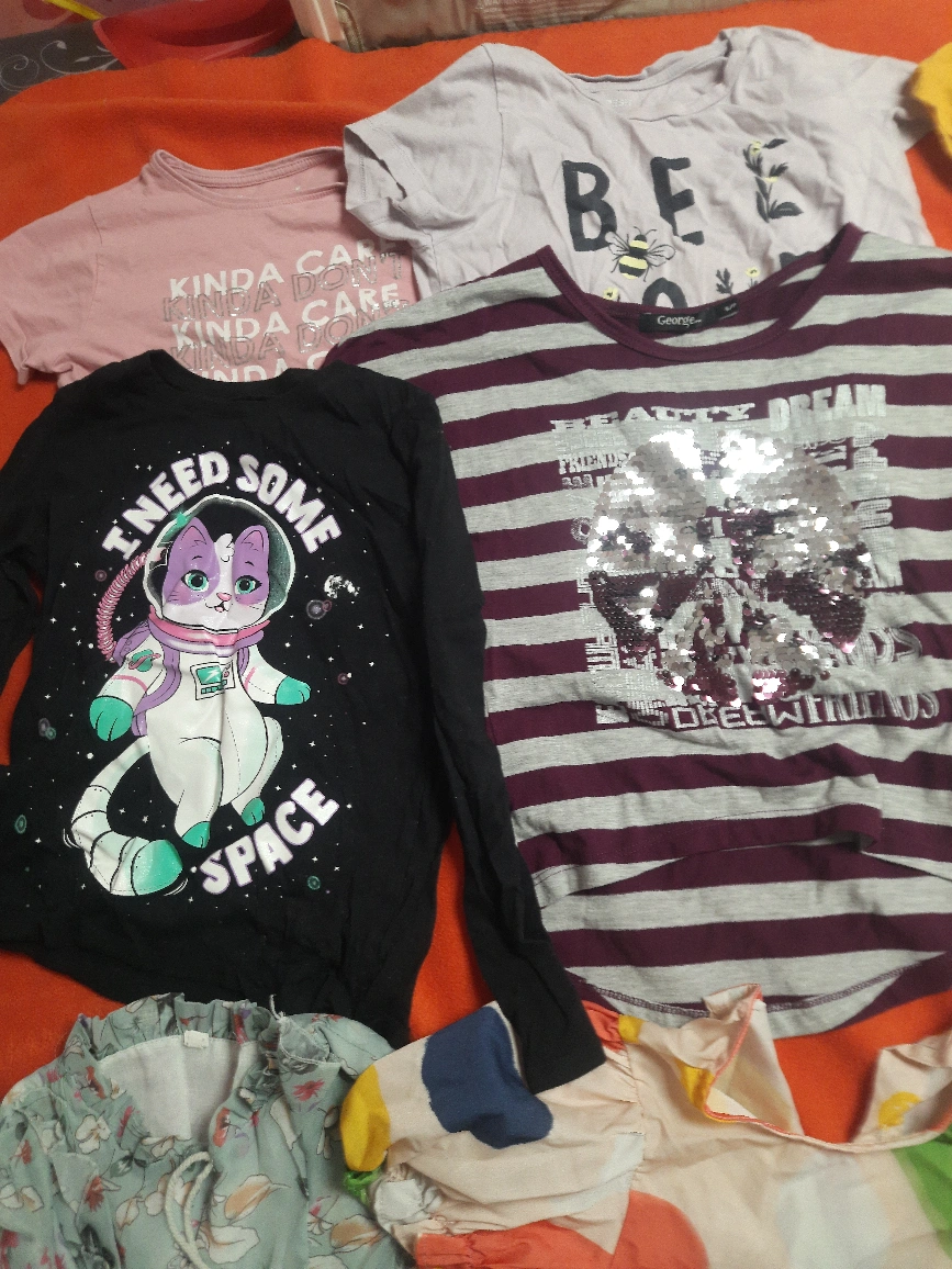 Selling a bundle of girls' clothing in various sizes and styles. Includes t-shirts, long-sleeved shirts, pants, and dresses. Brands include The Children's Place and George. Perfect for stocking up on everyday wear!