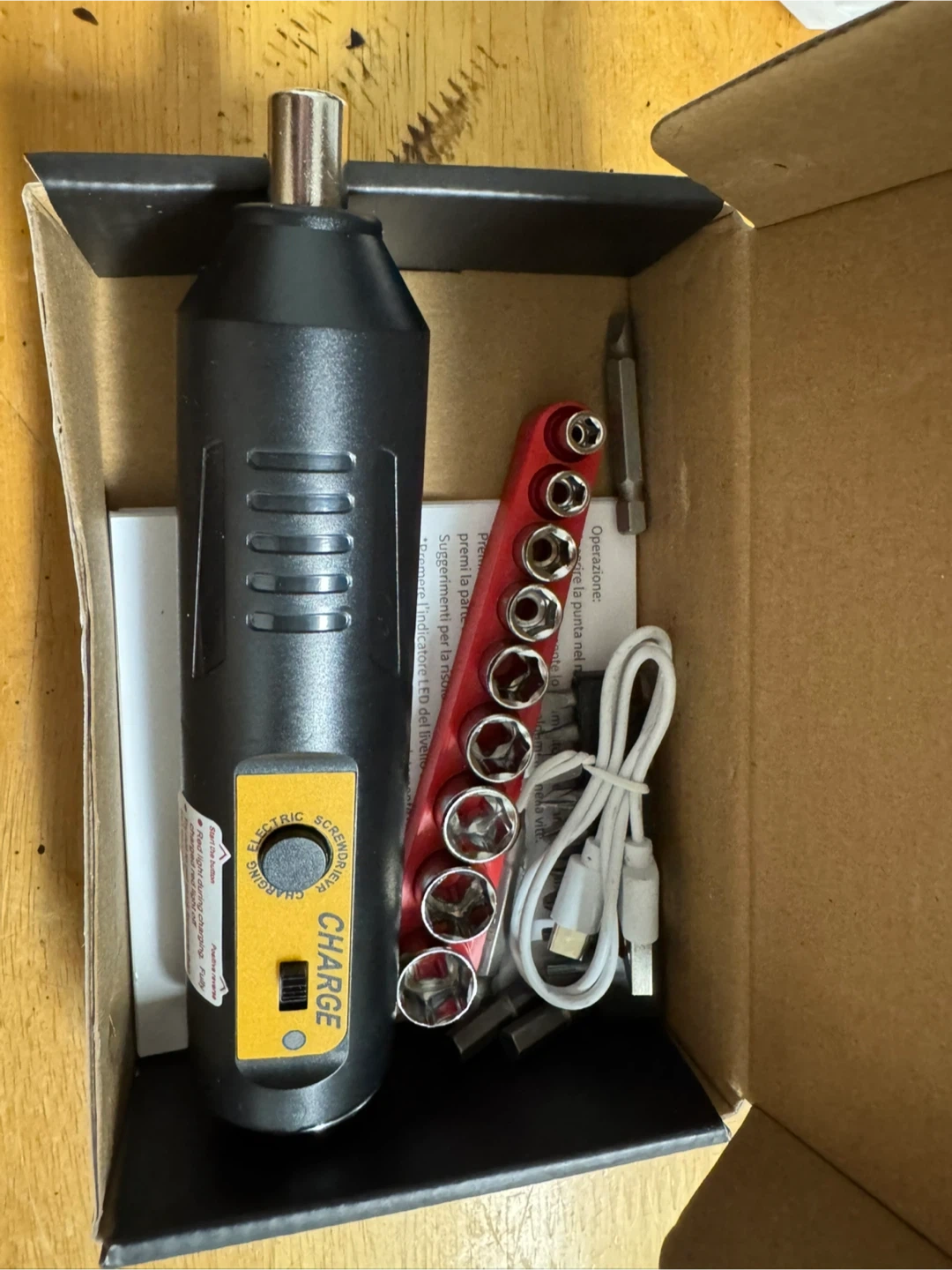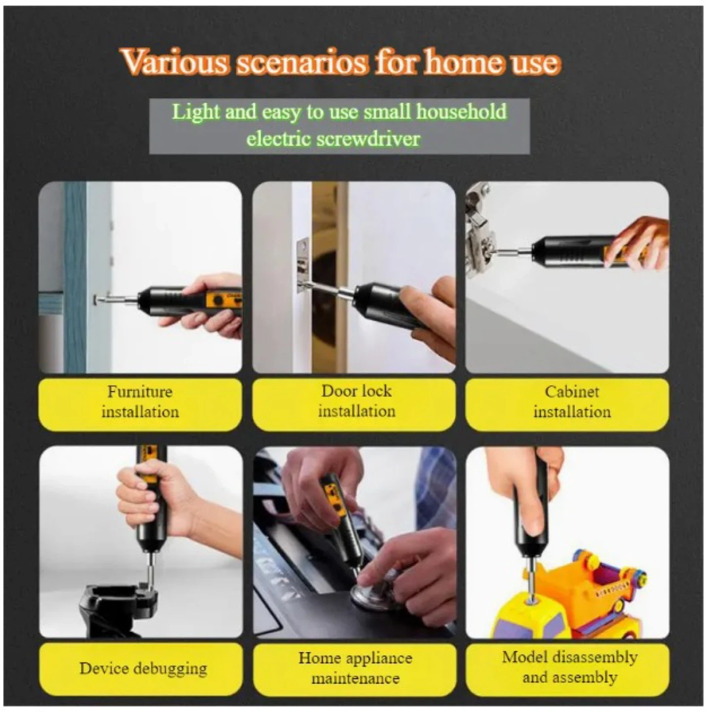 Portable Home Use Electric Screwdriver Precision Screwdriver Equipment Set, Mini Cordless Electric Screwdriver set Selling an electric screwdriver set, complete with its original box! It includes various screwdriver bits and a charging cable. It's lightweight and easy to use for small household tasks, like furniture assembly and appliance maintenance