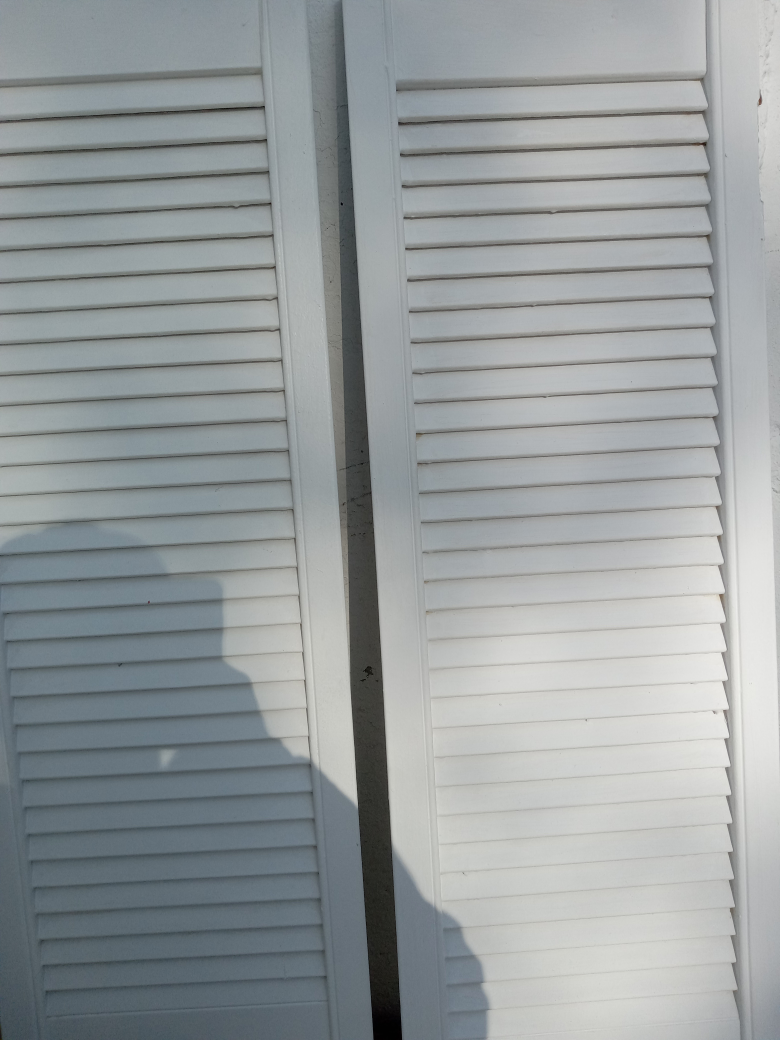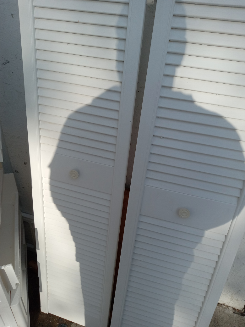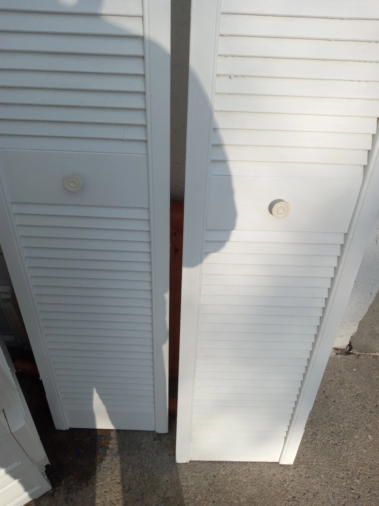 Selling a set of white louvered closet doors. They're in good condition and ready to be installed. Perfect for adding a classic look to your closet or storage space!30wide ,77.5 inches high