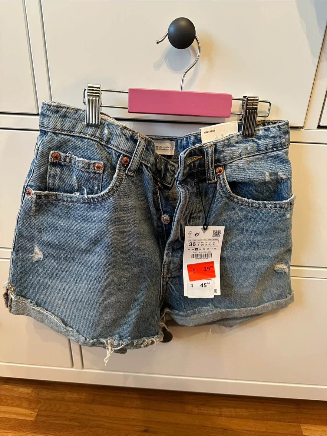 10I'm selling a pair of Zara high-rise denim shorts. They're a size 36 and never worn. $25